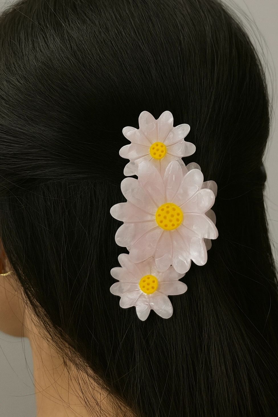 Pembe Renk Çiçek Figürlü Kemik Mandal Toka