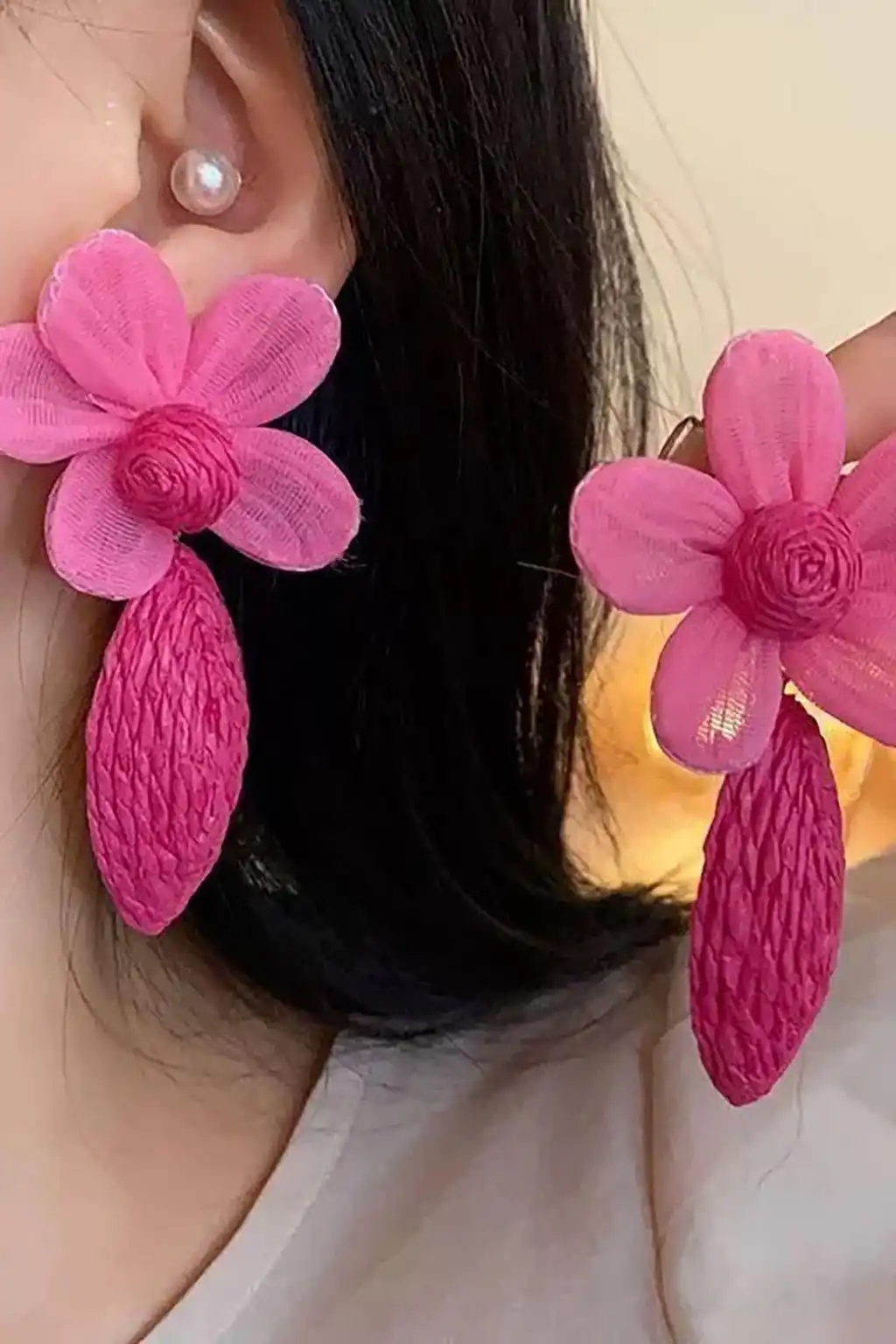 Pembe Renk Çiçek Figürlü Küpe (Çift)