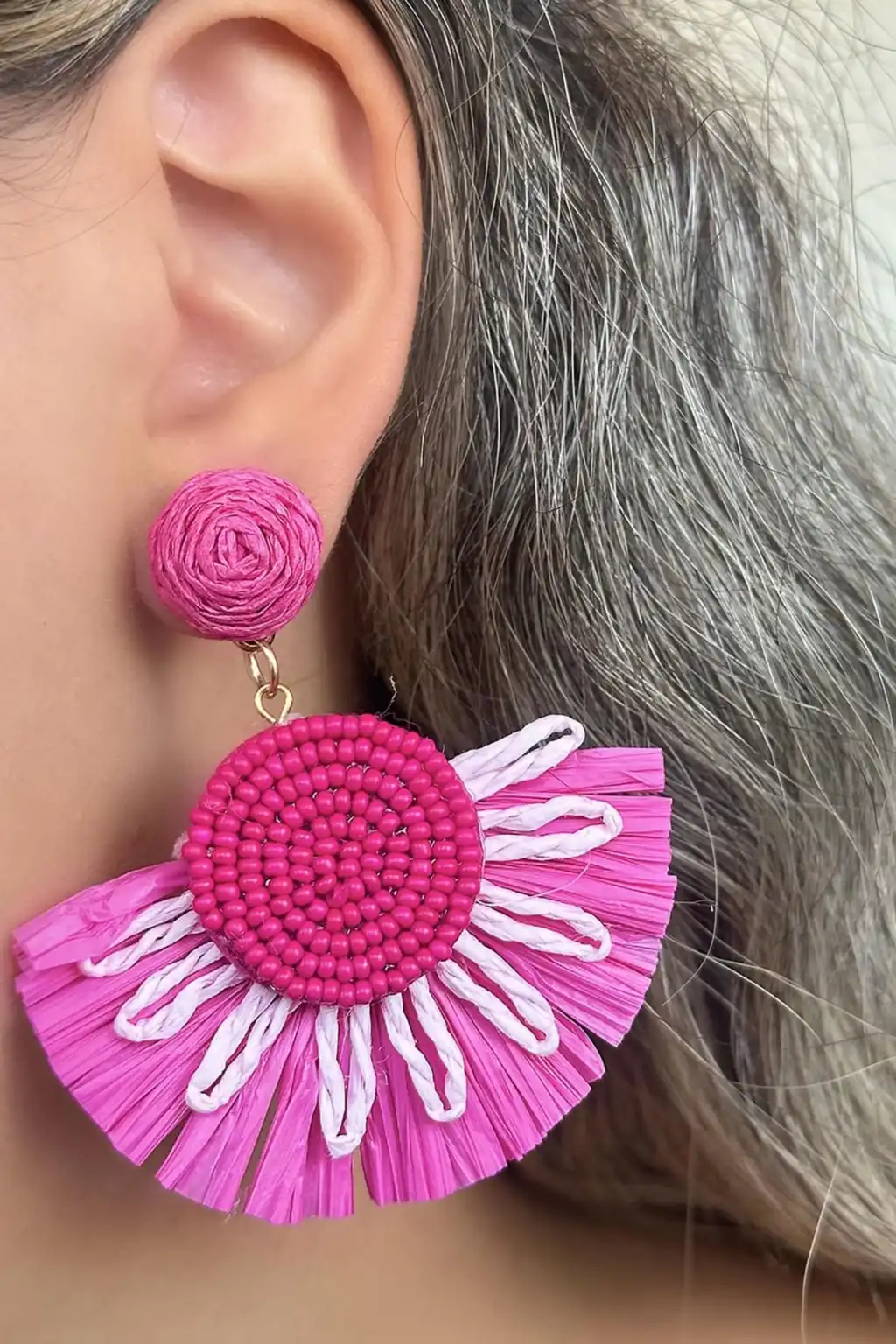 Pembe Renk Çiçek Figürlü Küpe (Çift)