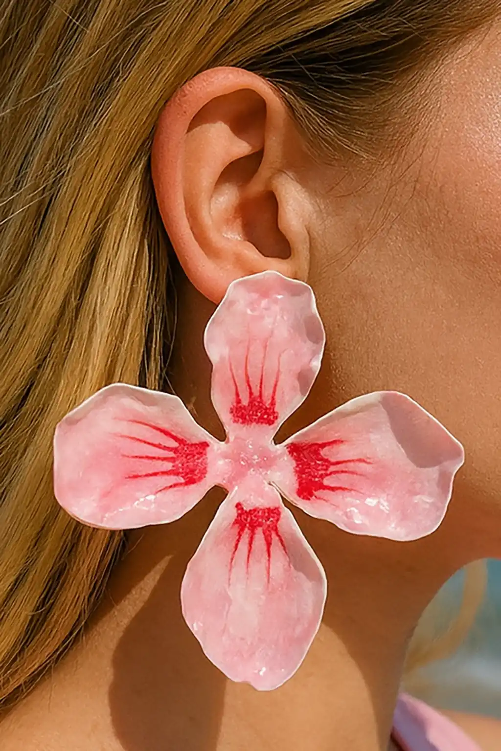 Pembe Renk Çiçek Figürlü Küpe (Çift)