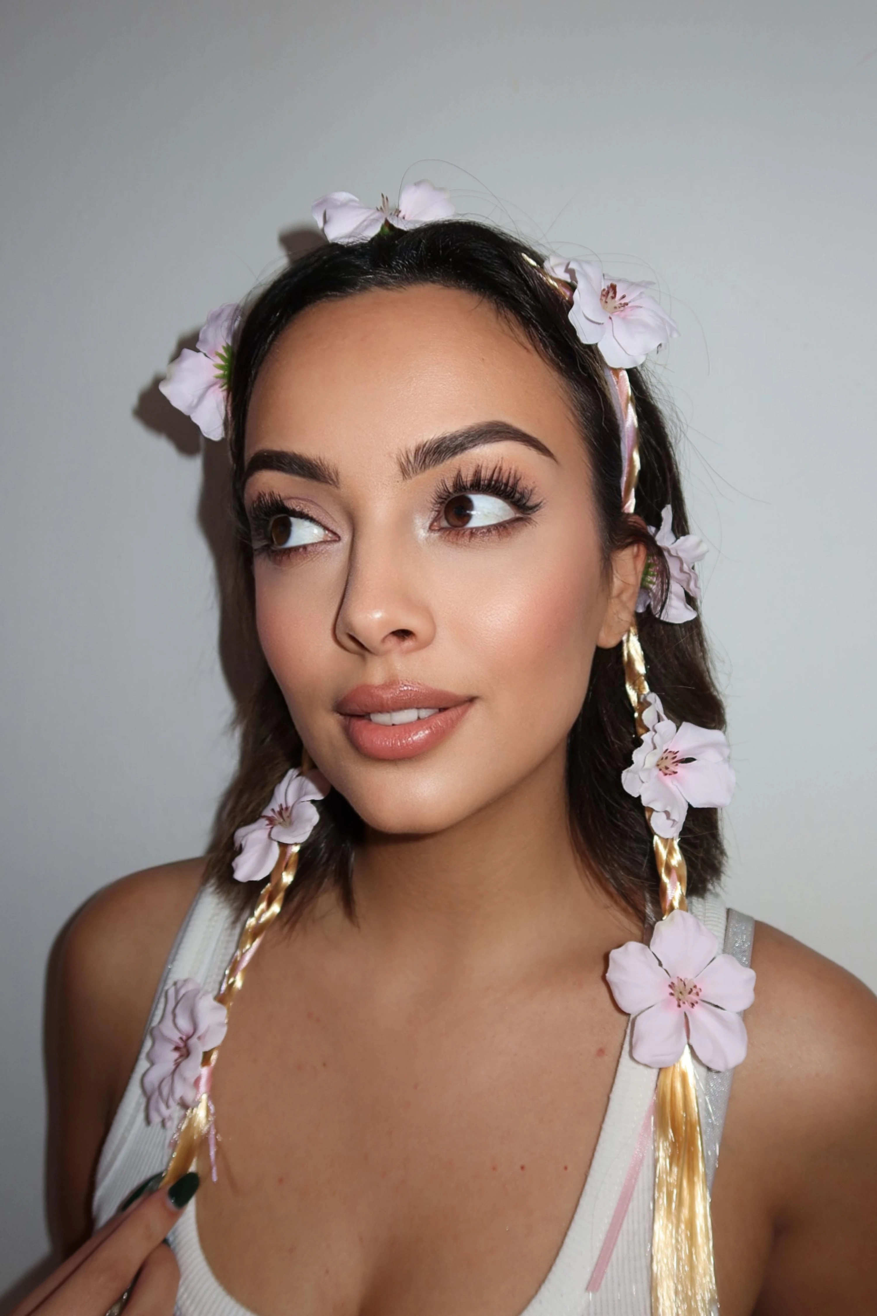 Pembe Renk Çiçek Figürlü Örgü Saçlı Çocuk Taç