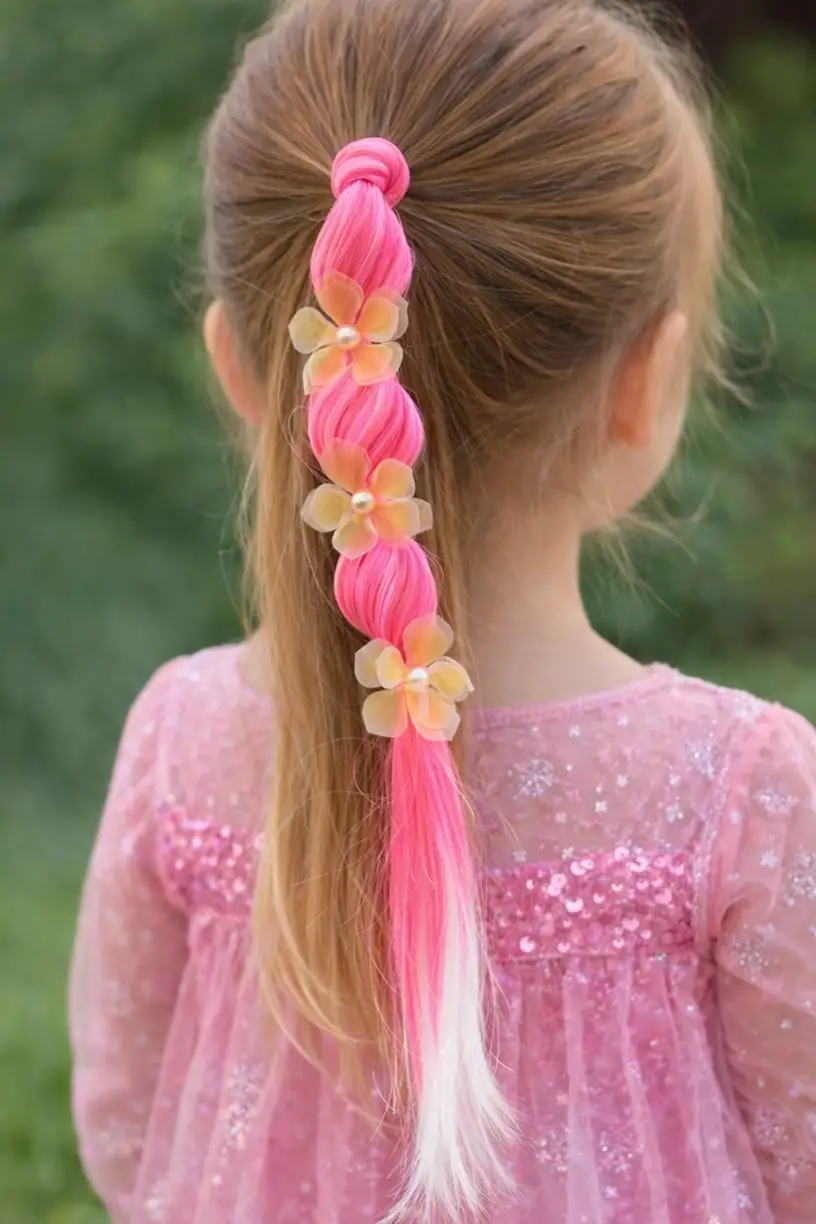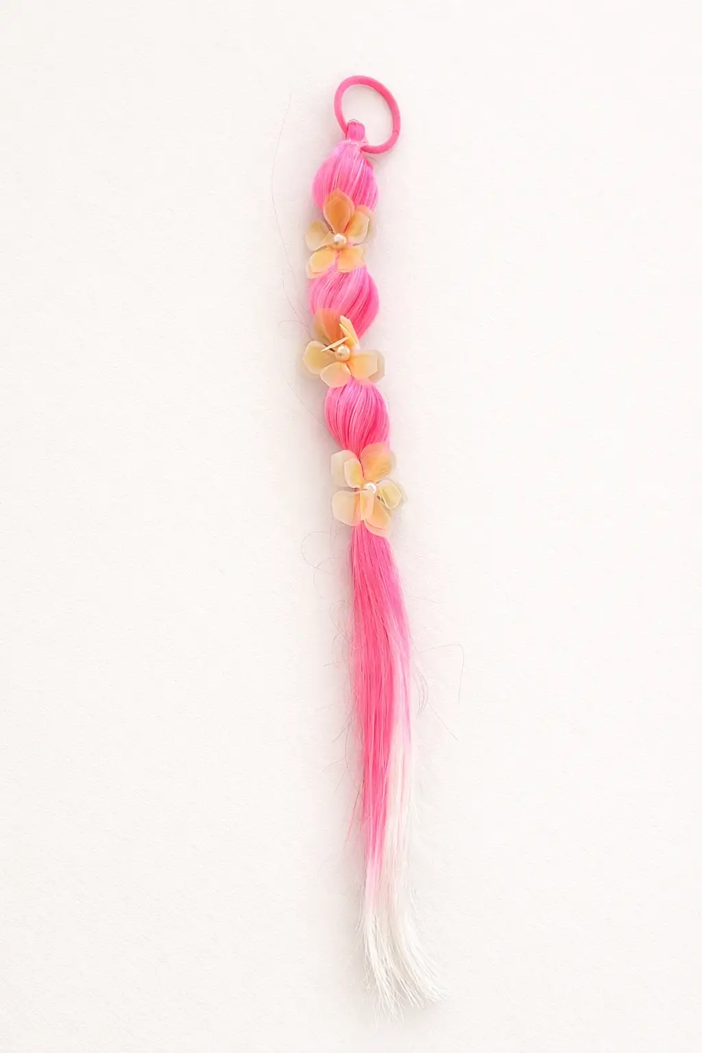Pembe Renk Çiçek Figürlü Saç Detaylı Lastik Toka