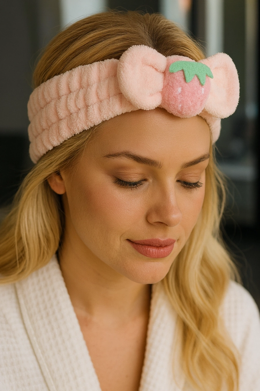 Pembe Renk Çilek Figürlü Peluş Saç Bandı