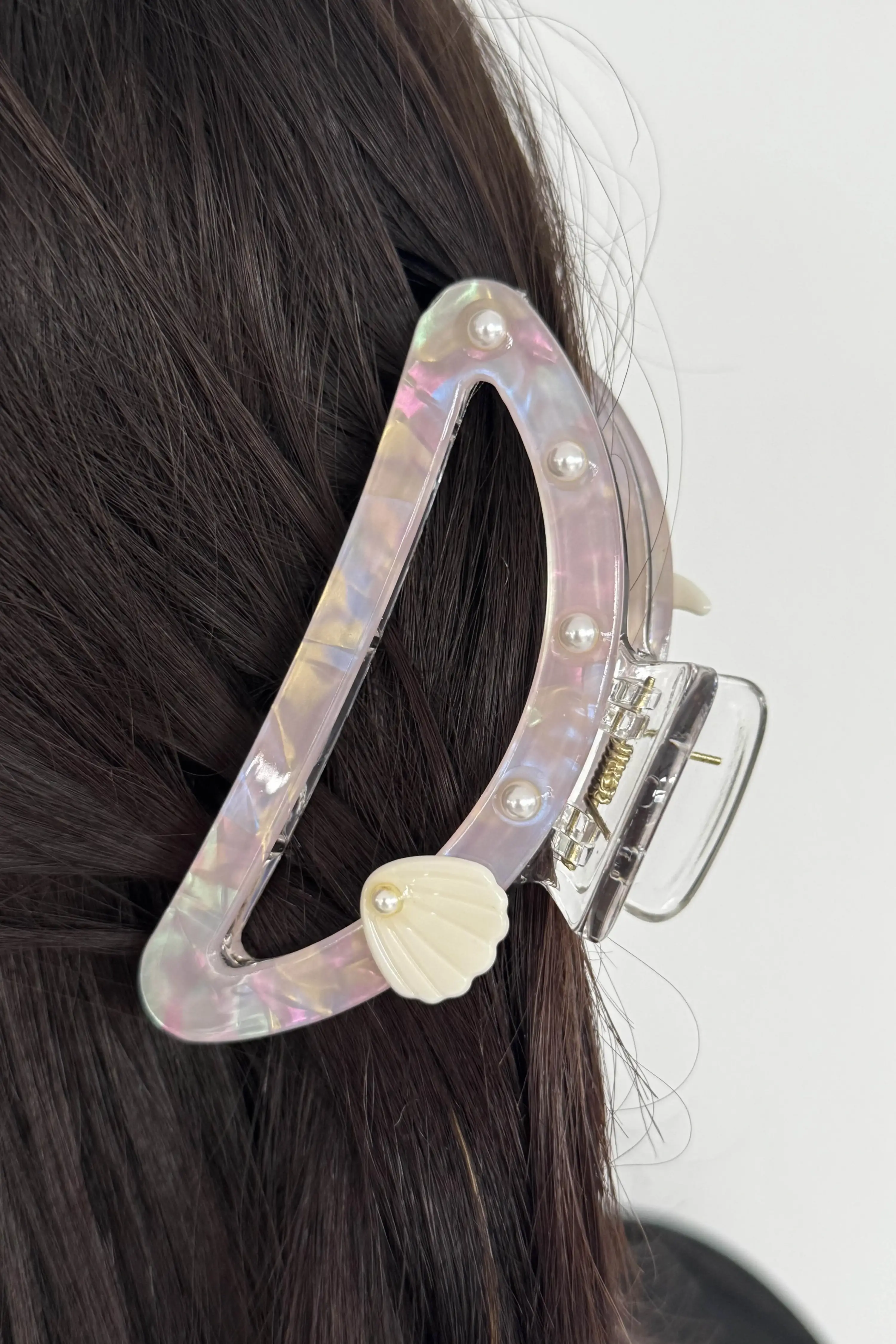 Pembe Renk Deniz Kabuğu Figürlü Kemik Mandal Toka