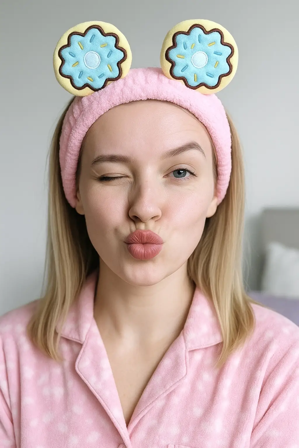Pembe Renk Donut Figürlü Peluş Saç Bandı