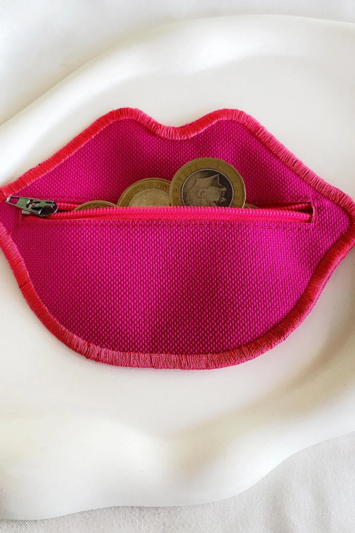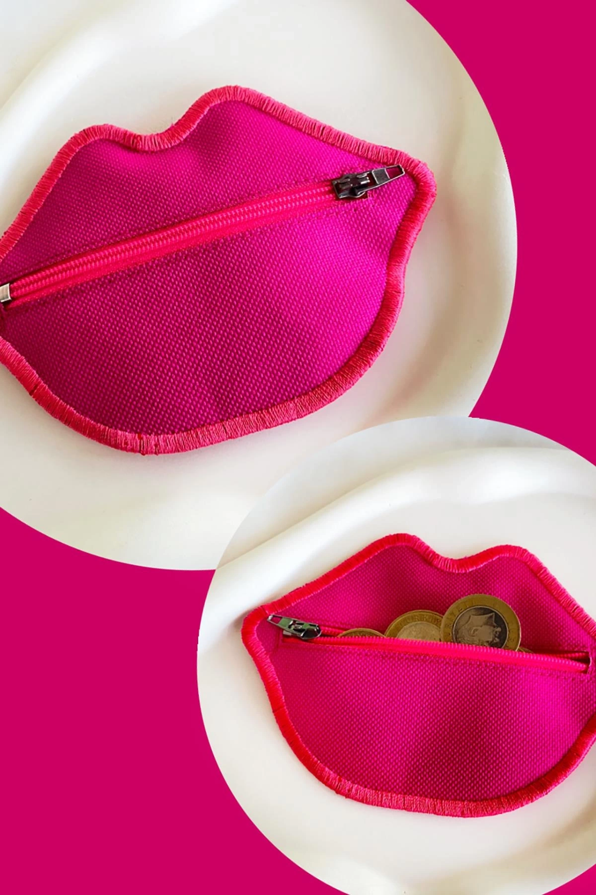 Pembe Renk Dudak Detaylı Kadın Cüzdan