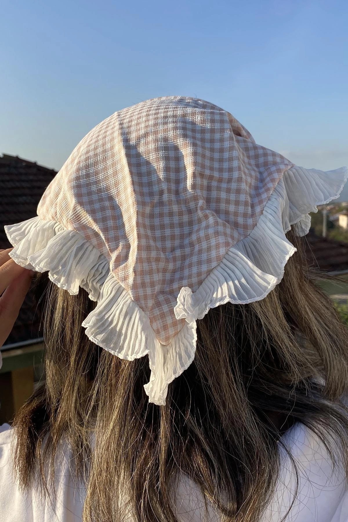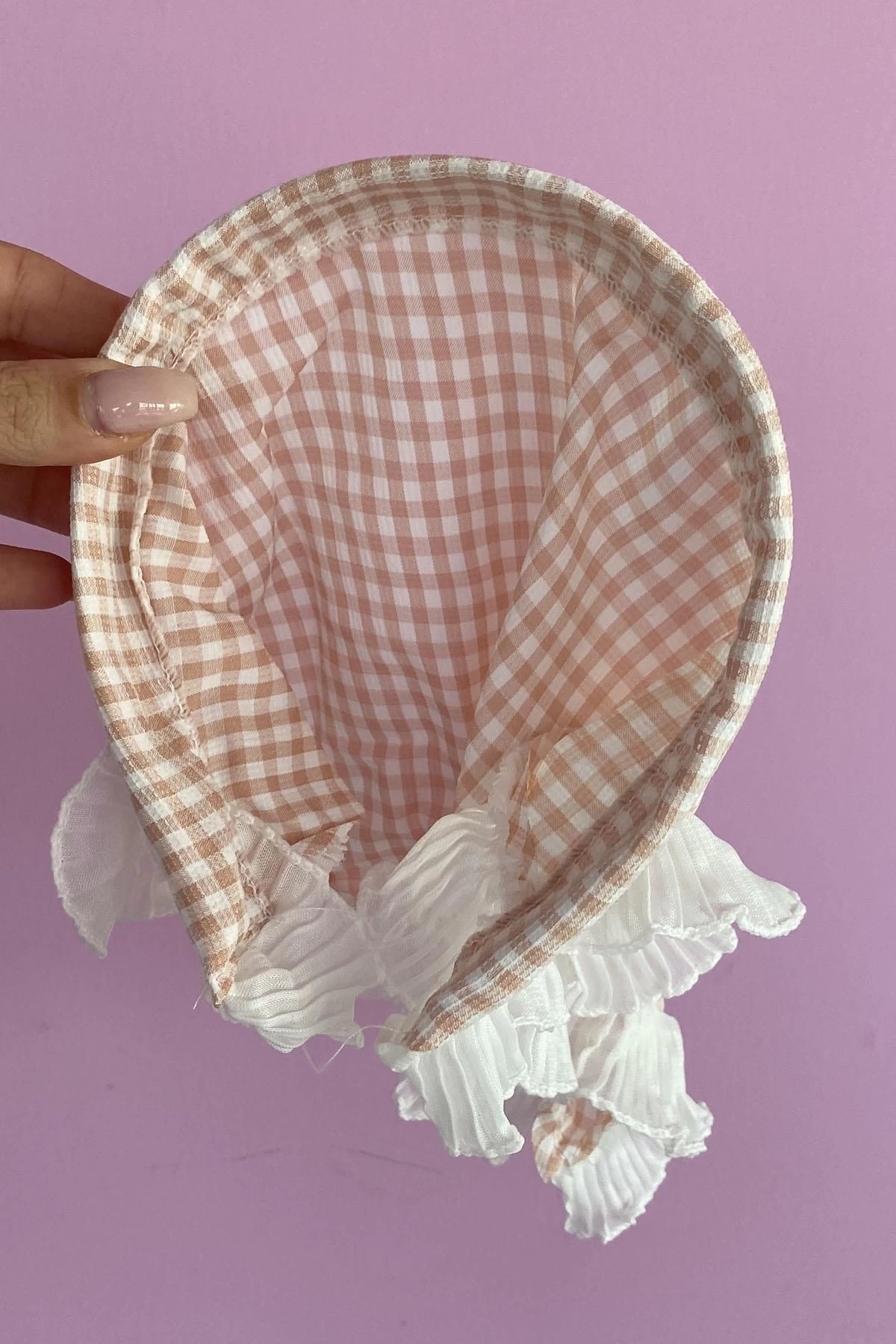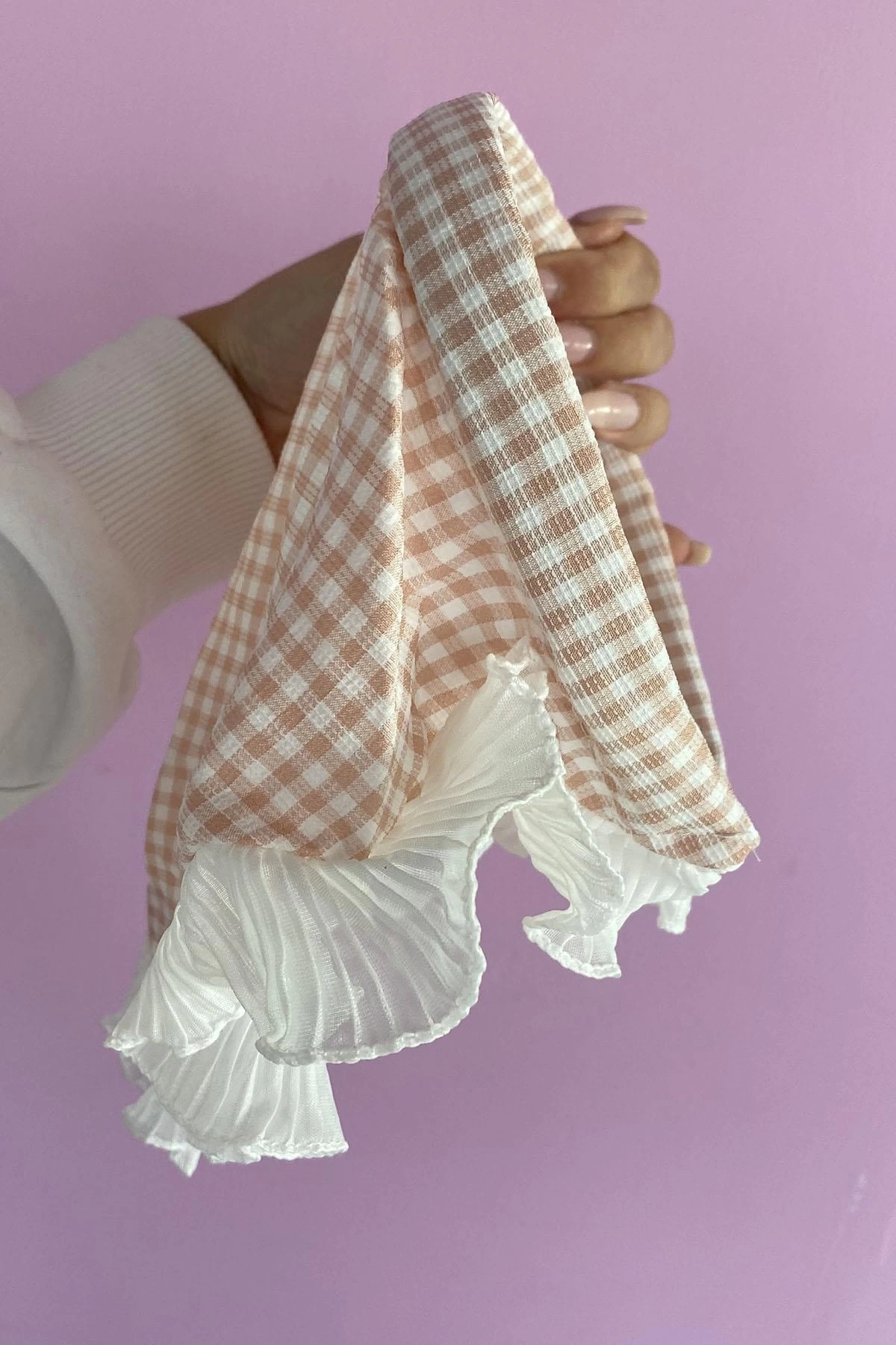 Pembe Renk Fular Detaylı Pötikare Desenli Taç