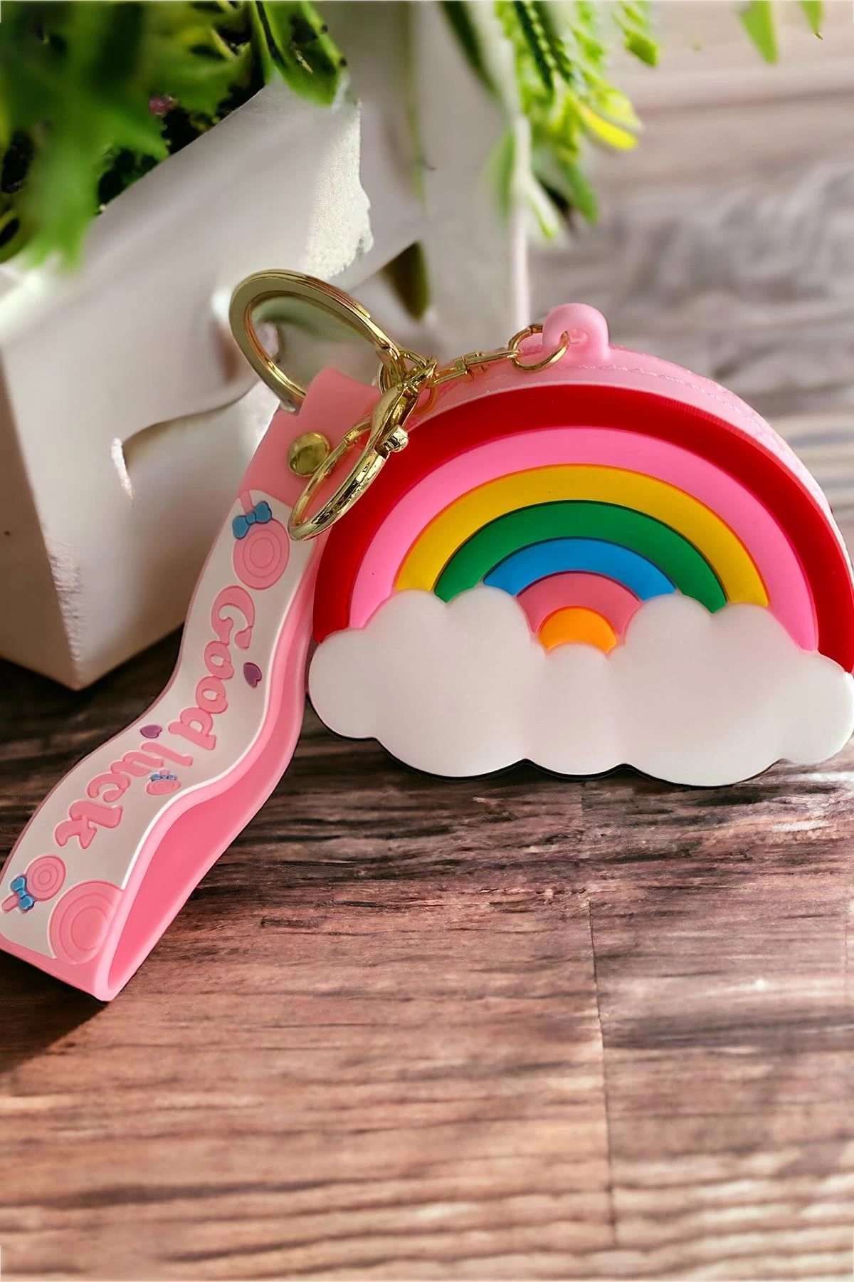 Pembe Renk Gökkuşağı Figürlü Cüzdan/ Anahtarlık