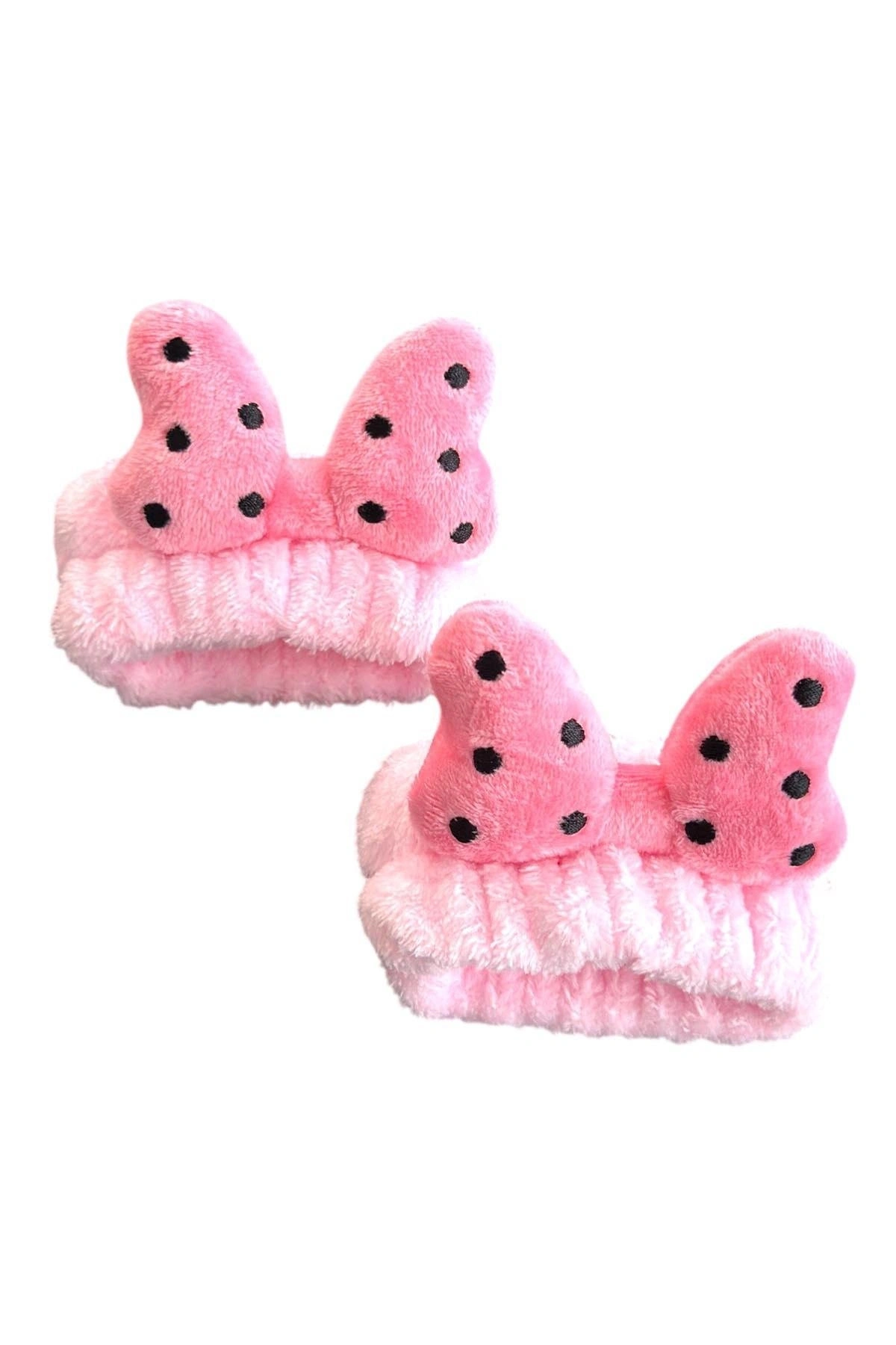 Pembe Renk İkili Kurdele Figürlü Peluş Su Tutucu Havlu Bileklik