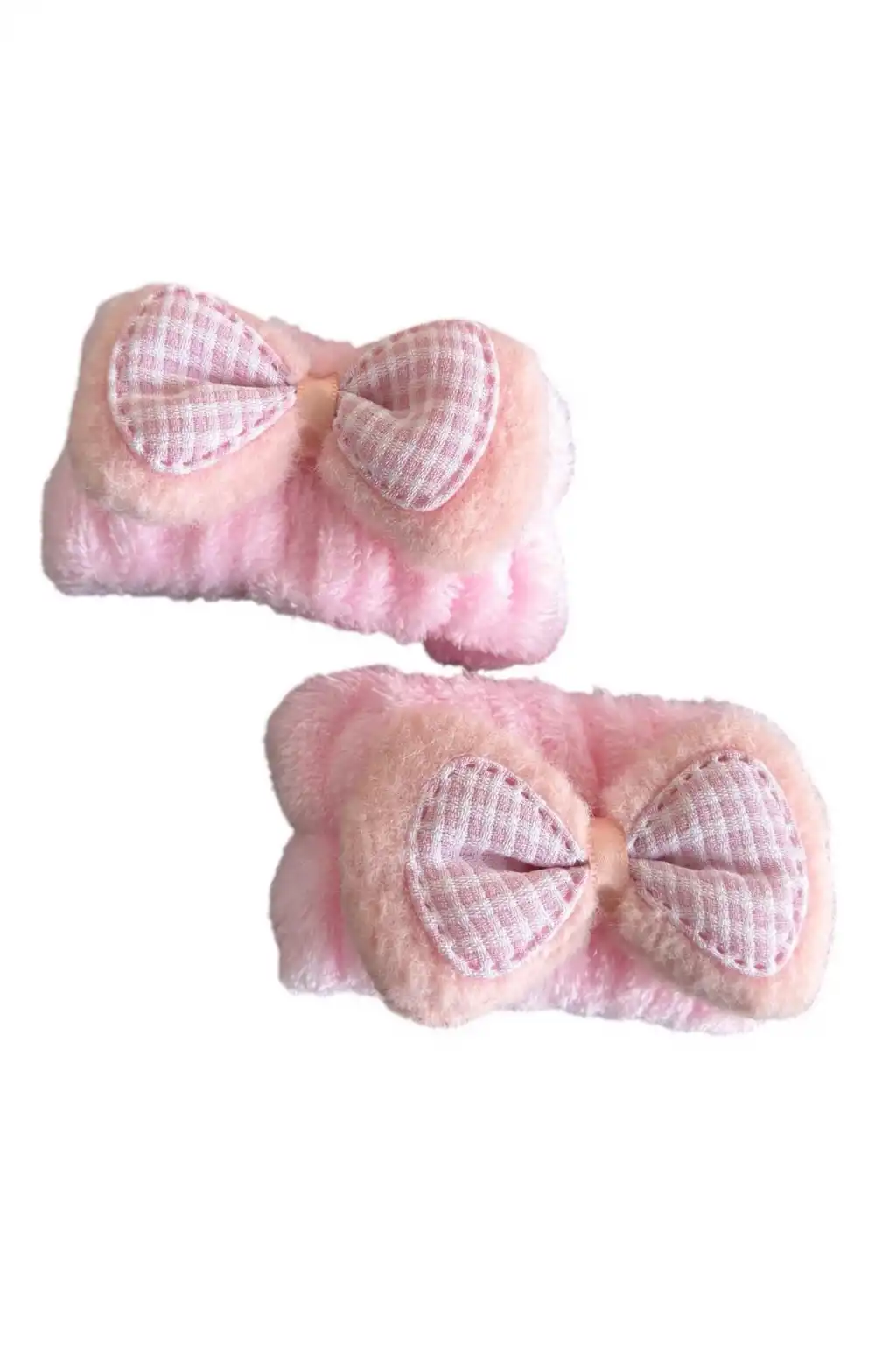 Pembe Renk İkili Kurdele Figürlü Peluş Su Tutucu Havlu Bileklik