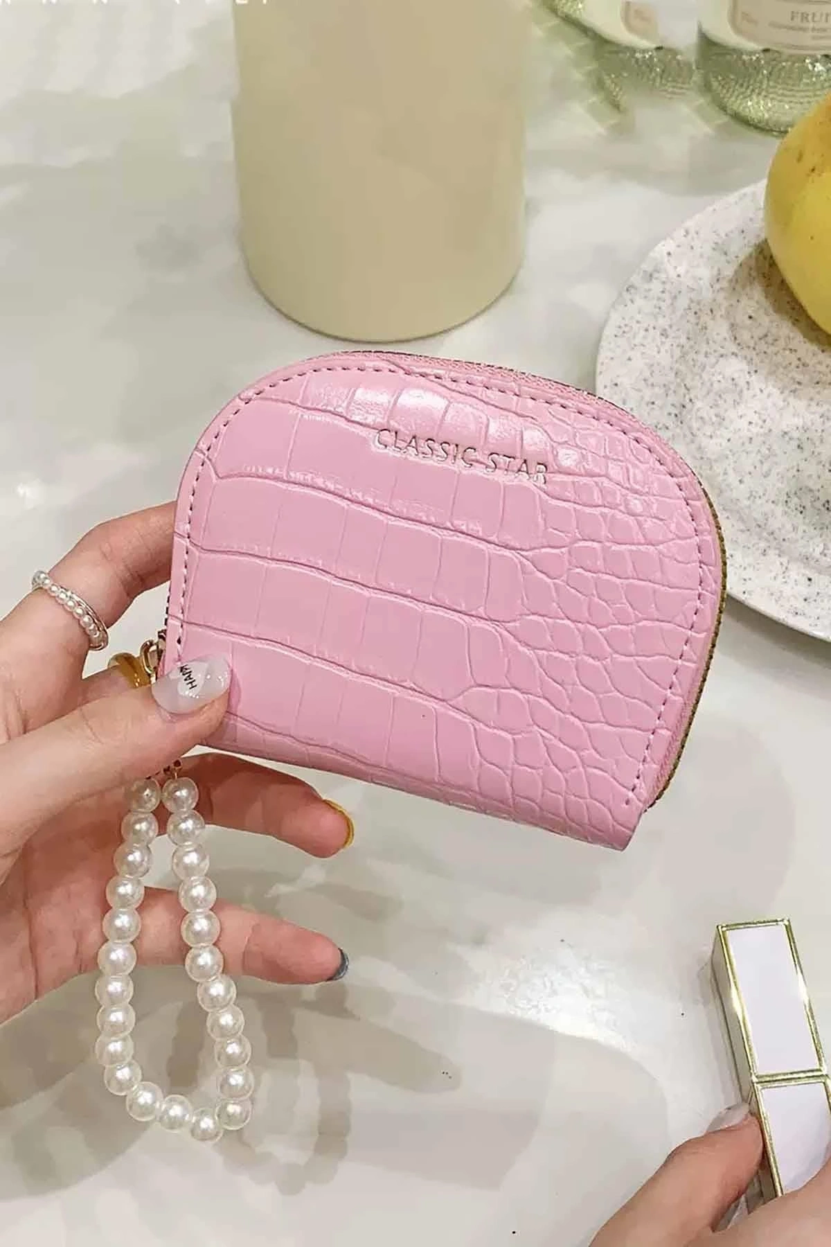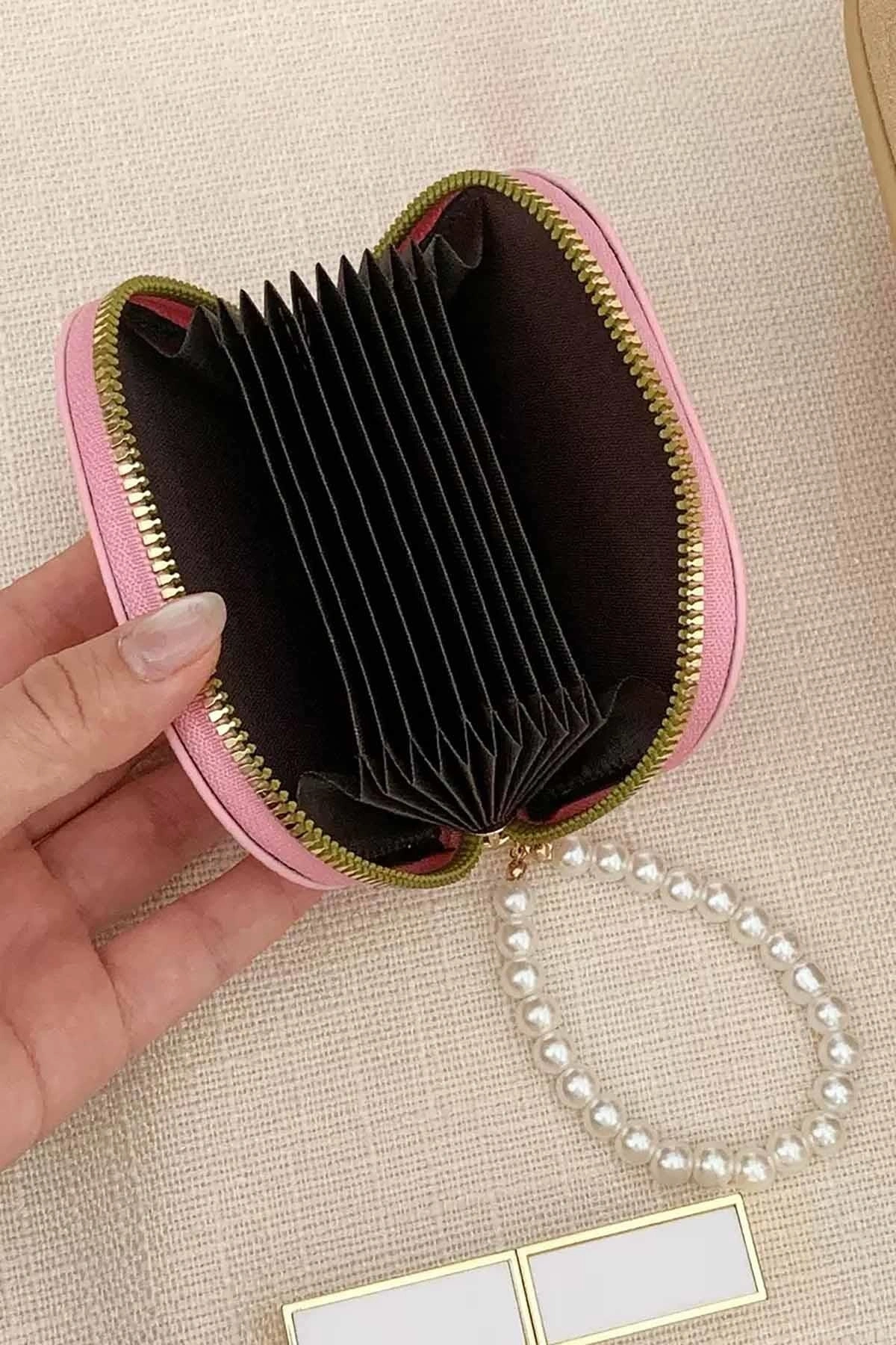 Pembe Renk İnci Detaylı Deri Kadın Cüzdan/Kartlık