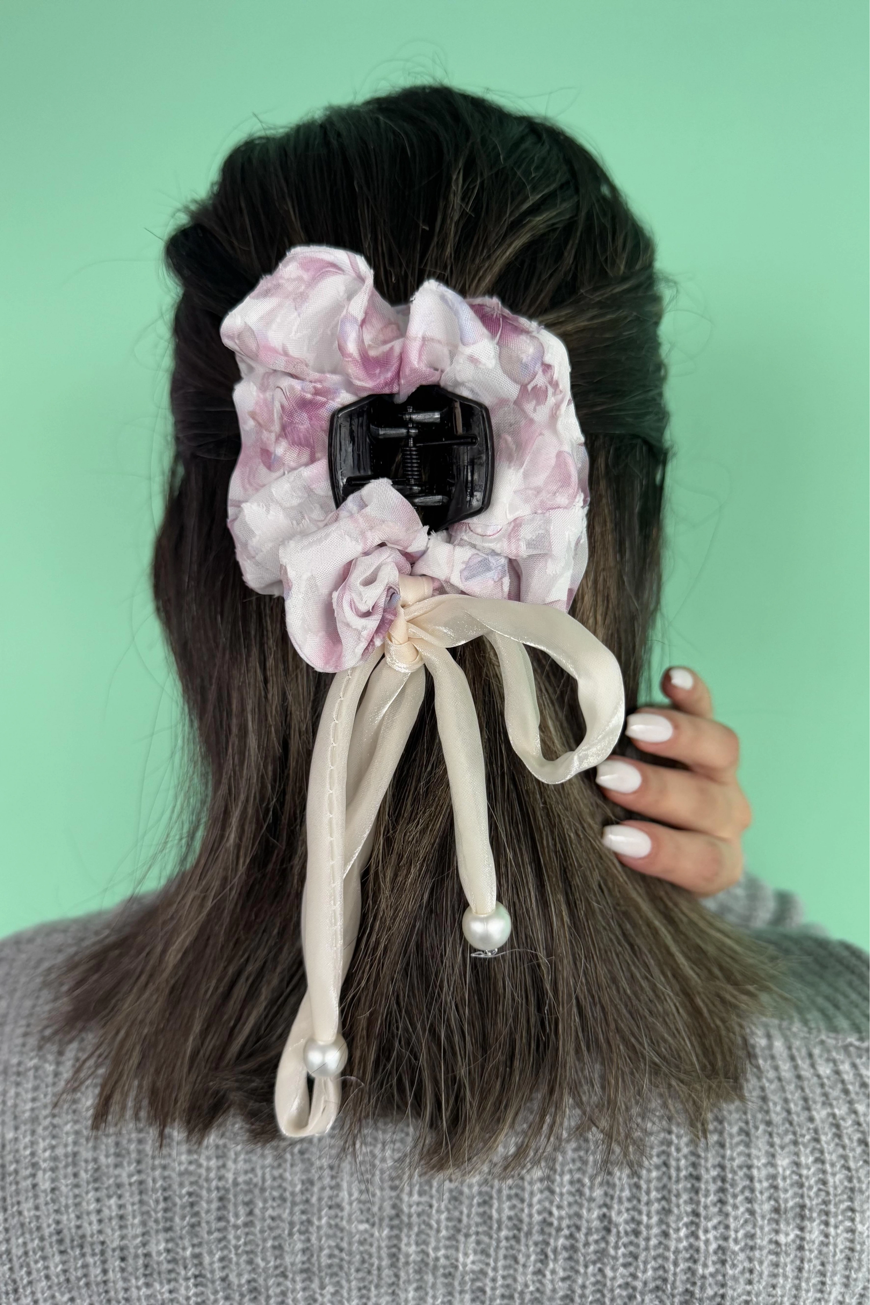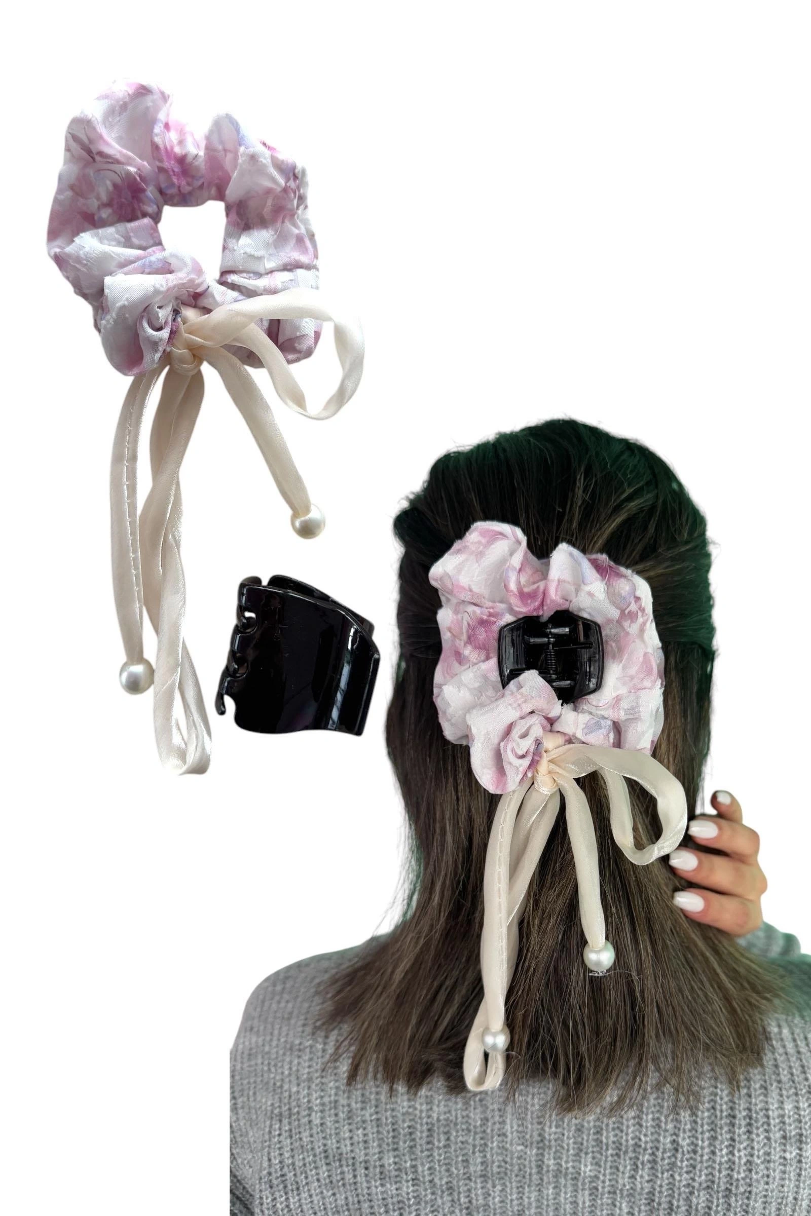 Pembe Renk İnci Detaylı Mandal/Simit Toka