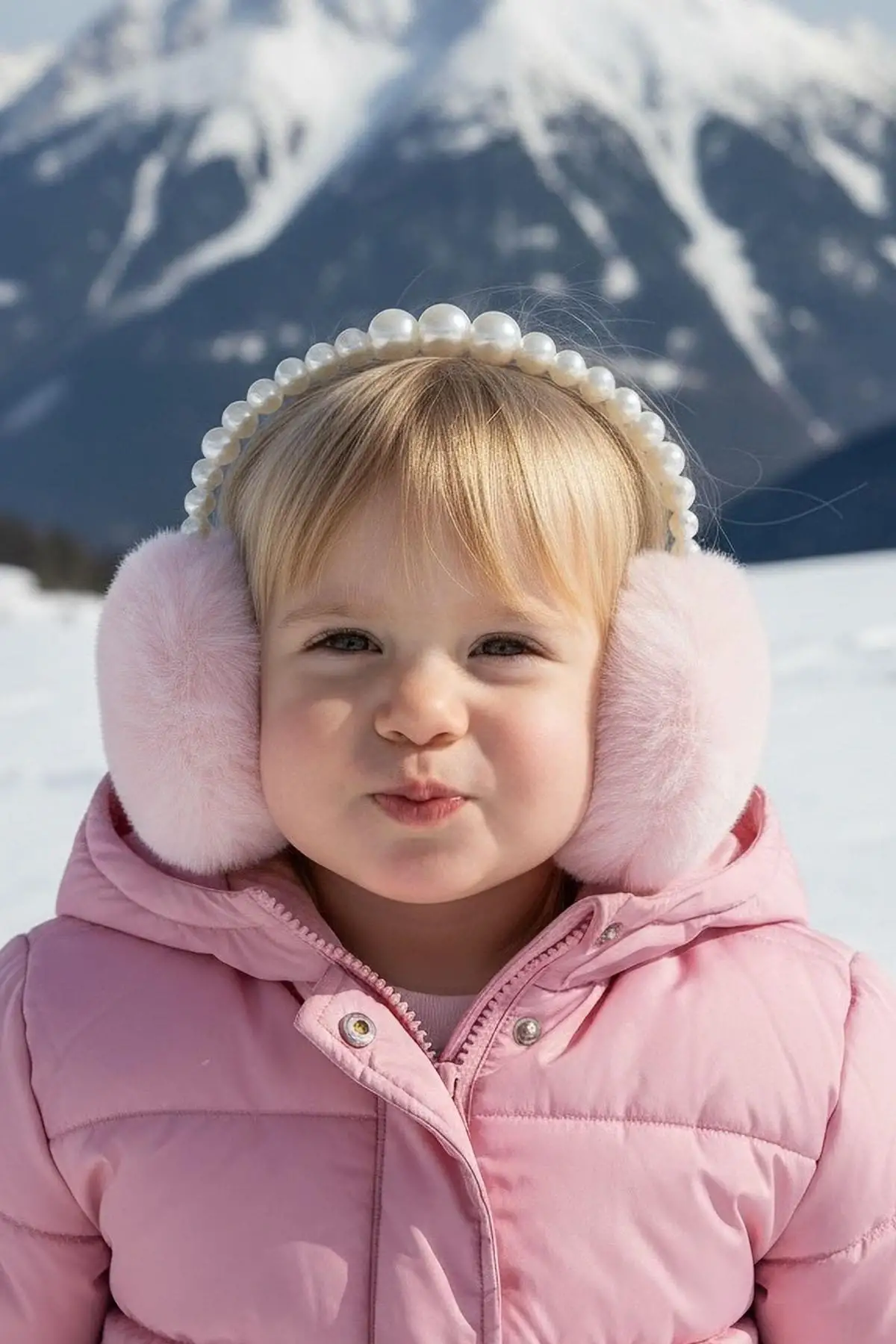 Pembe Renk İnci Detaylı Peluş Kulaklık