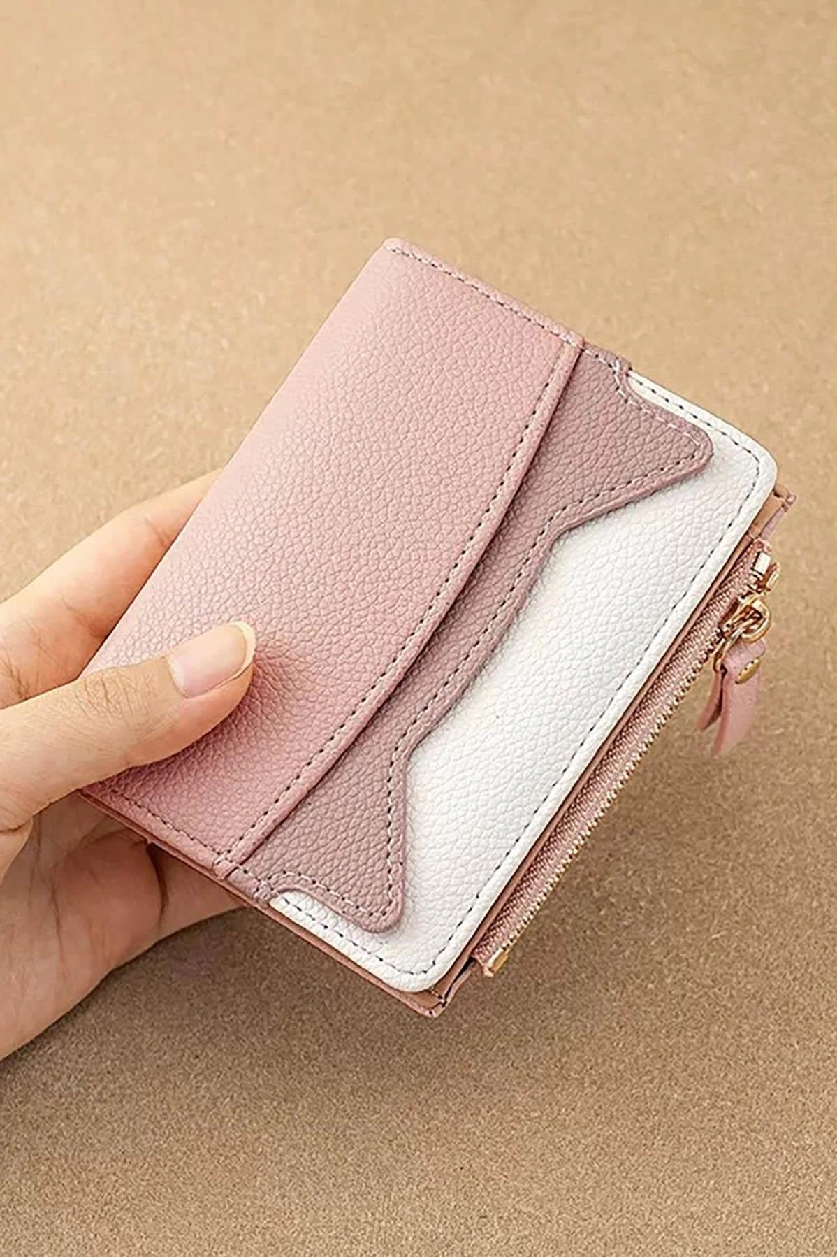 Pembe Renk Kadın Deri Cüzdan/Kartlık