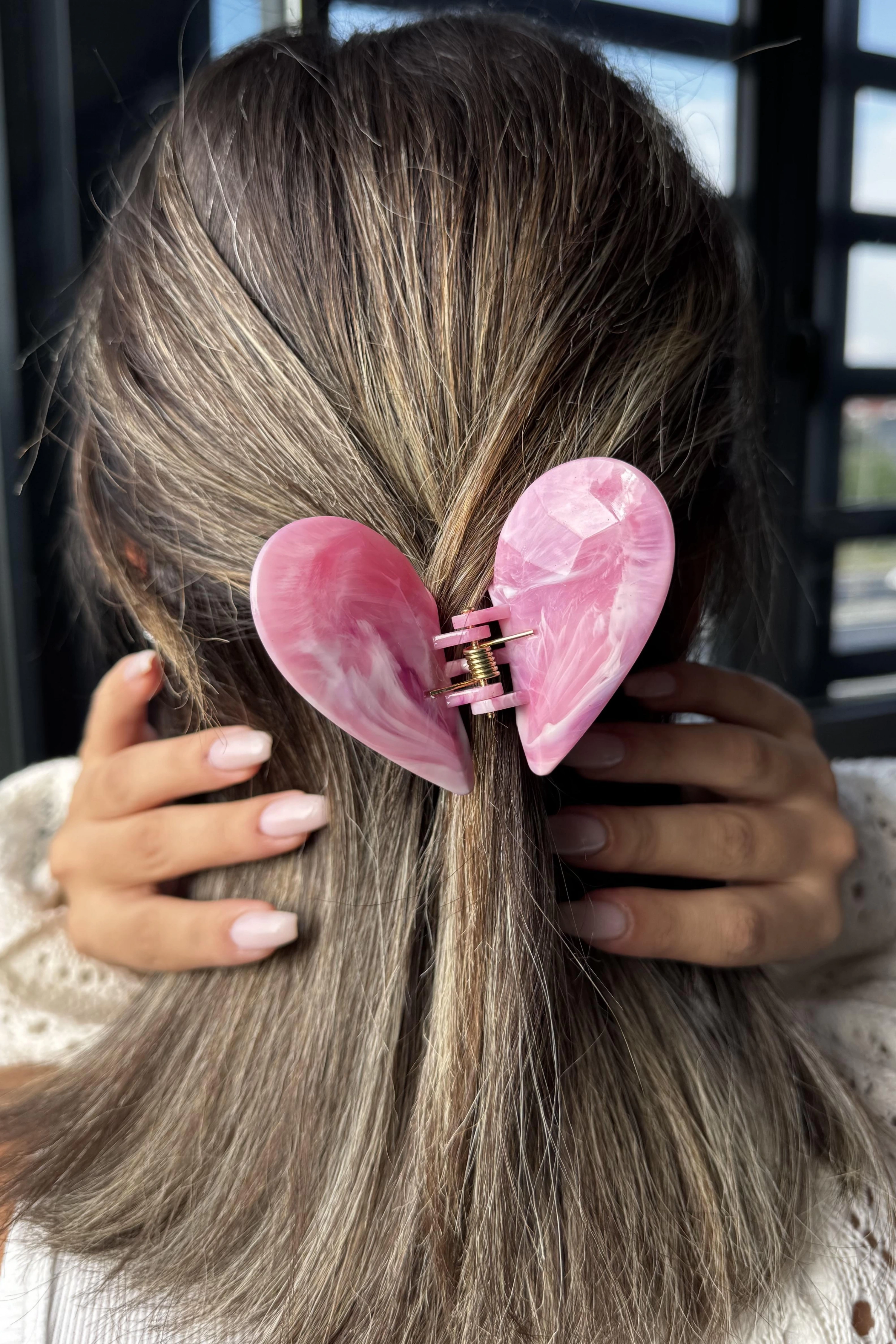 Pembe Renk Kalp Detaylı Kemik Mandal Toka