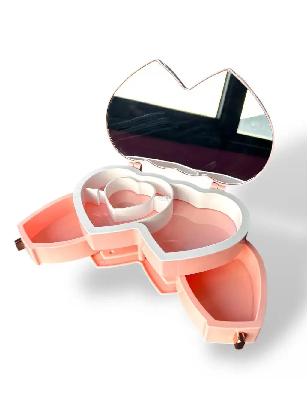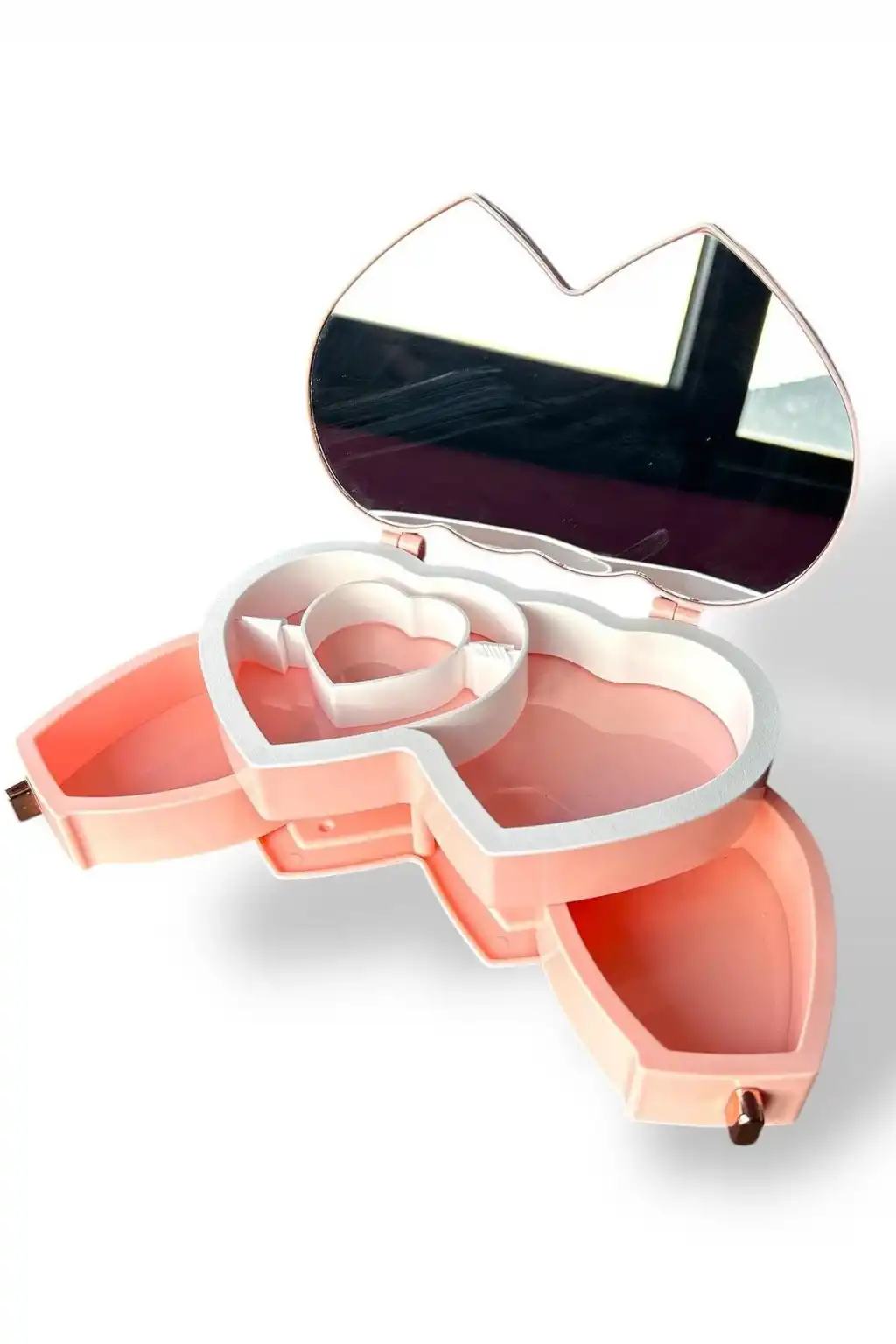 Pembe Renk Kalp Figürlü Aynalı Çekmeceli Takı Organizeri