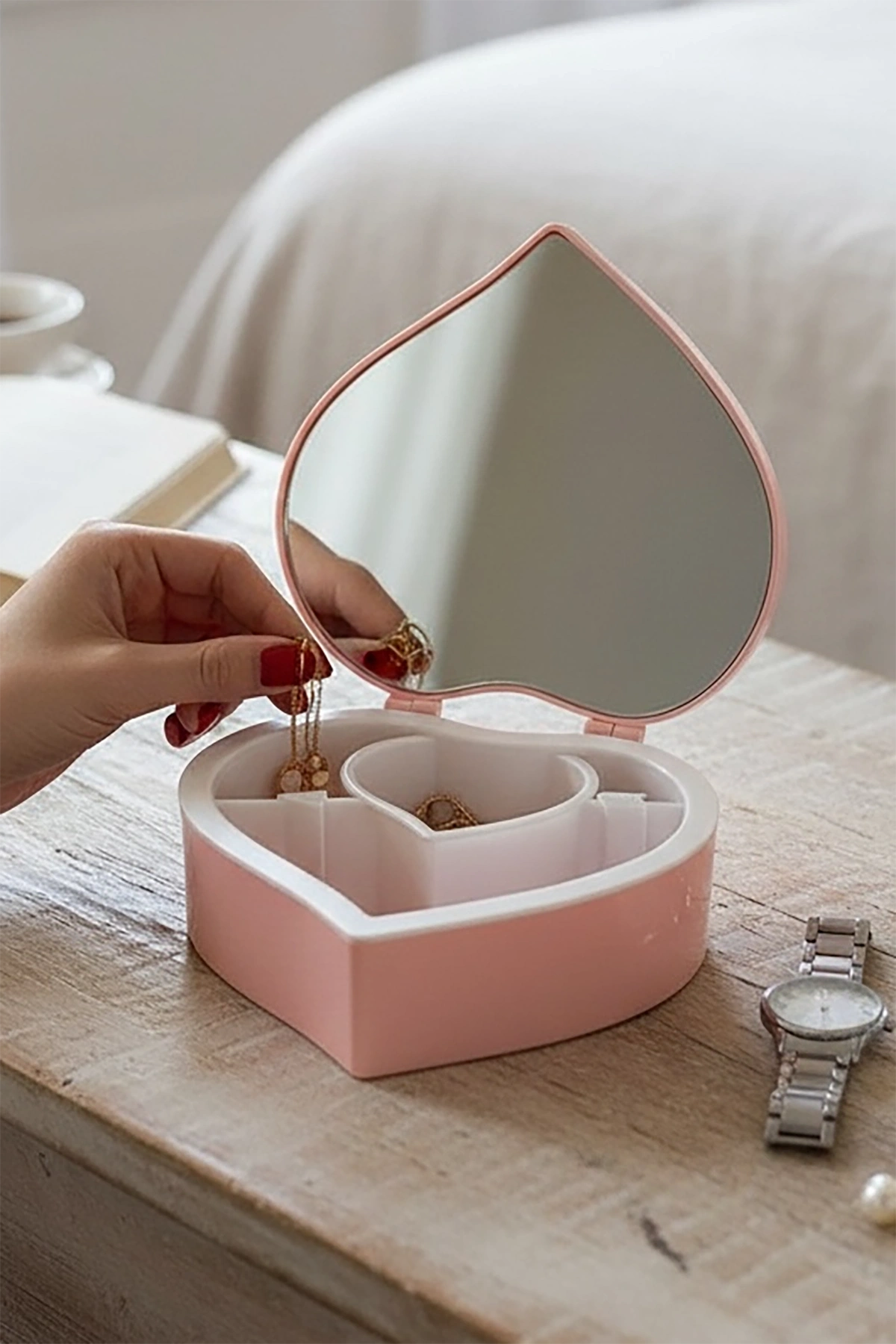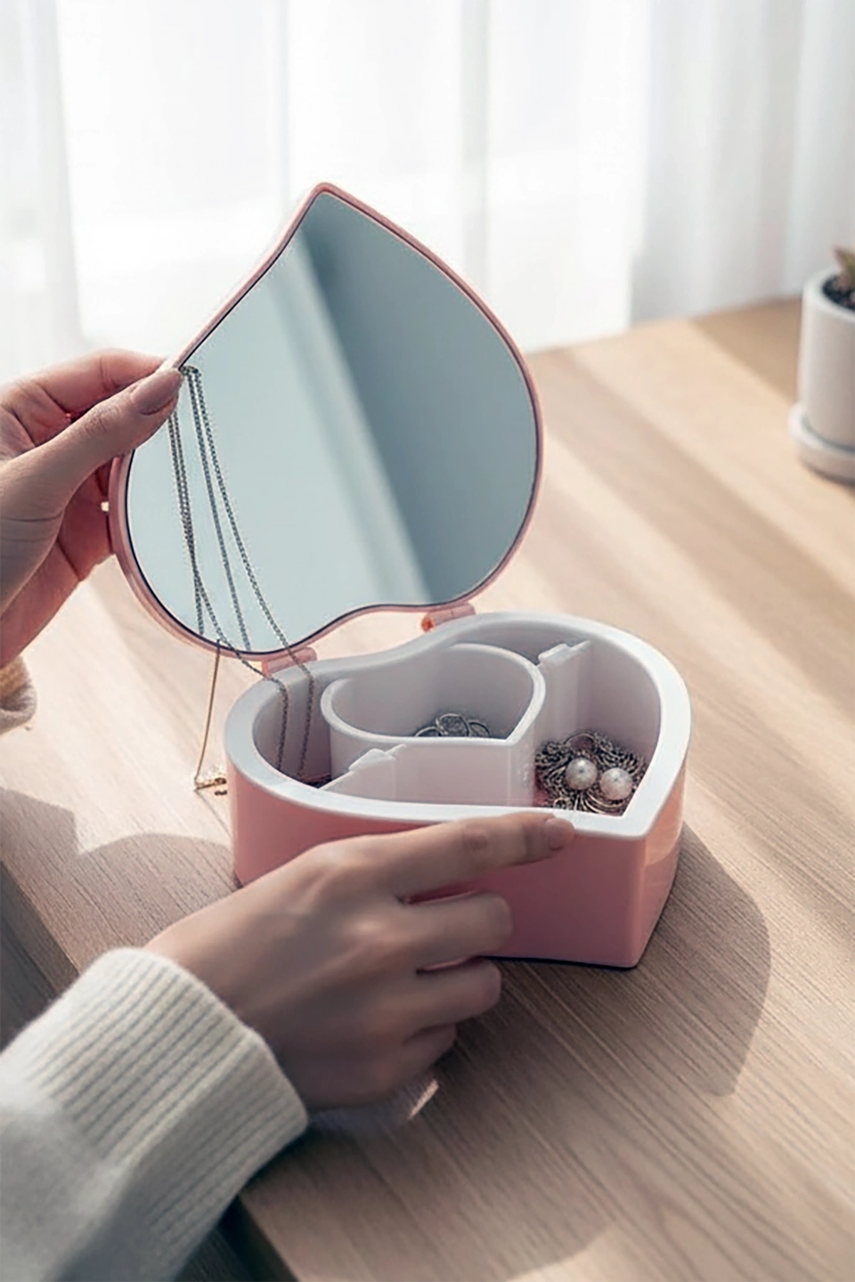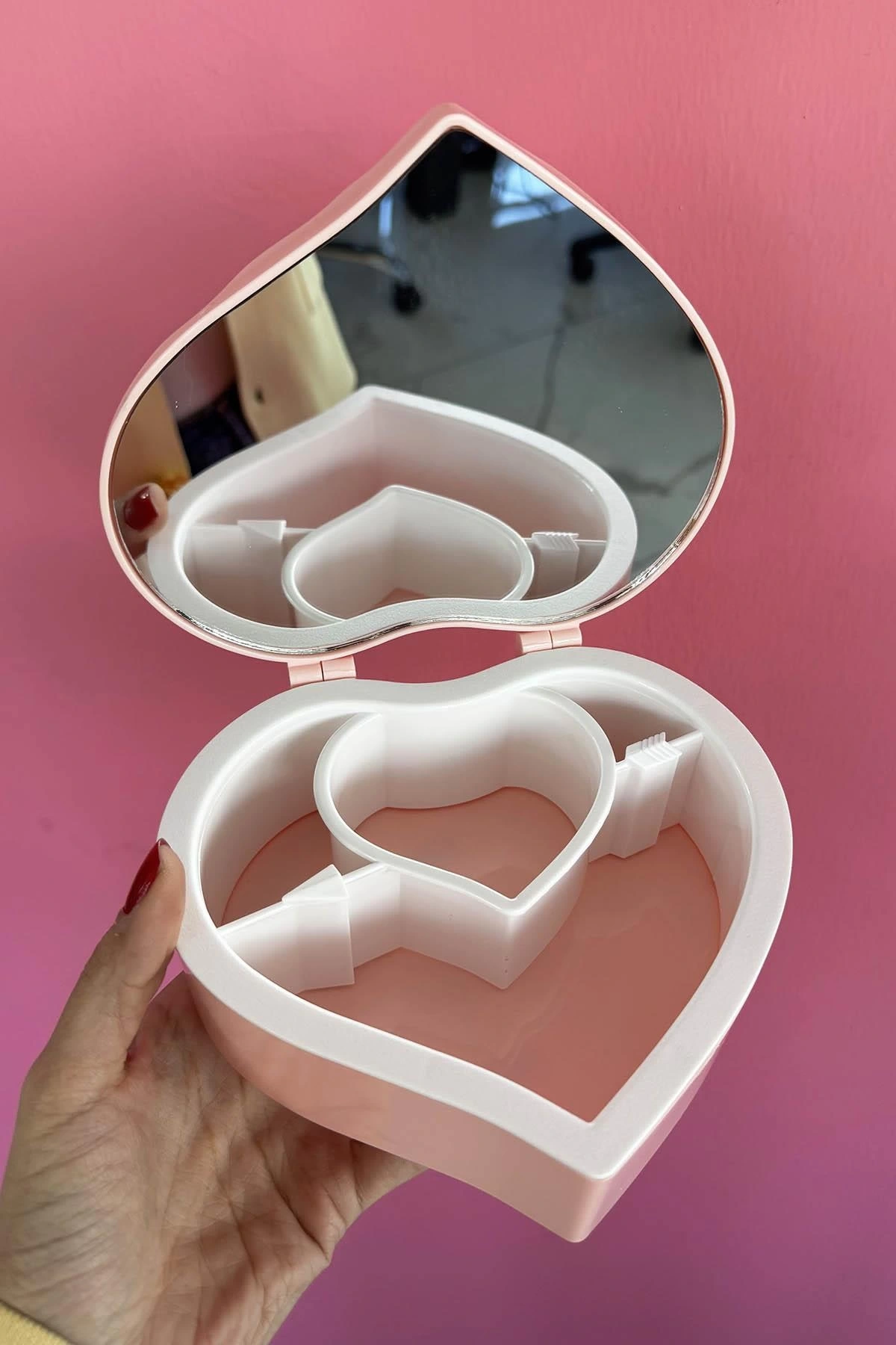 Pembe Renk Kalp Figürlü Aynalı Takı Organizeri