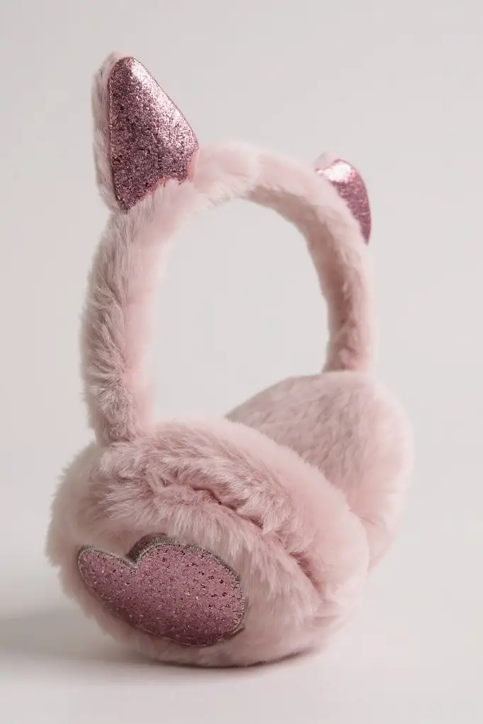 Pembe Renk Kalp Figürlü Kulaklı Çocuk Peluş Kulaklık