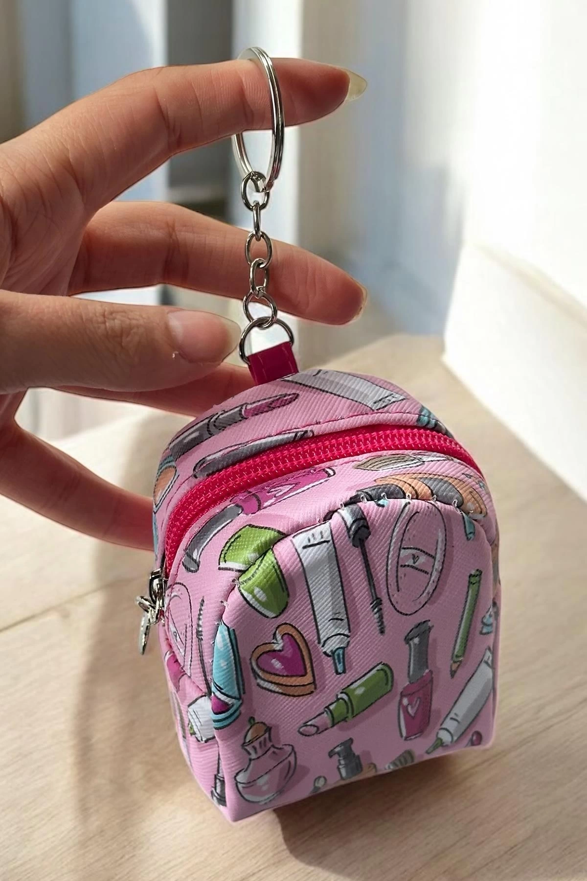 Pembe Renk Karışık Figürlü Anahtarlık Cüzdan
