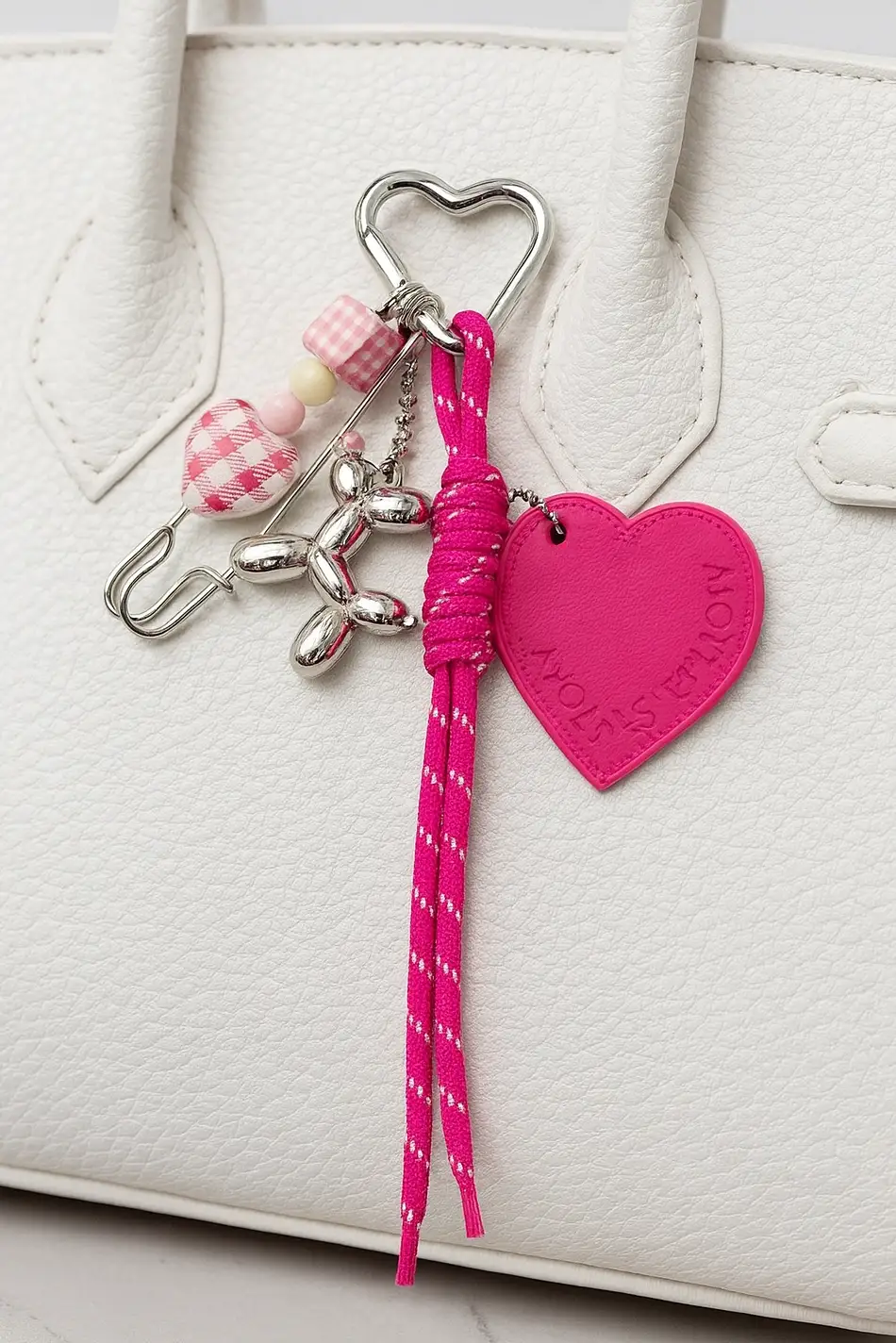 Pembe Renk Karışık Figürlü Çanta Charm/ Anahtarlık