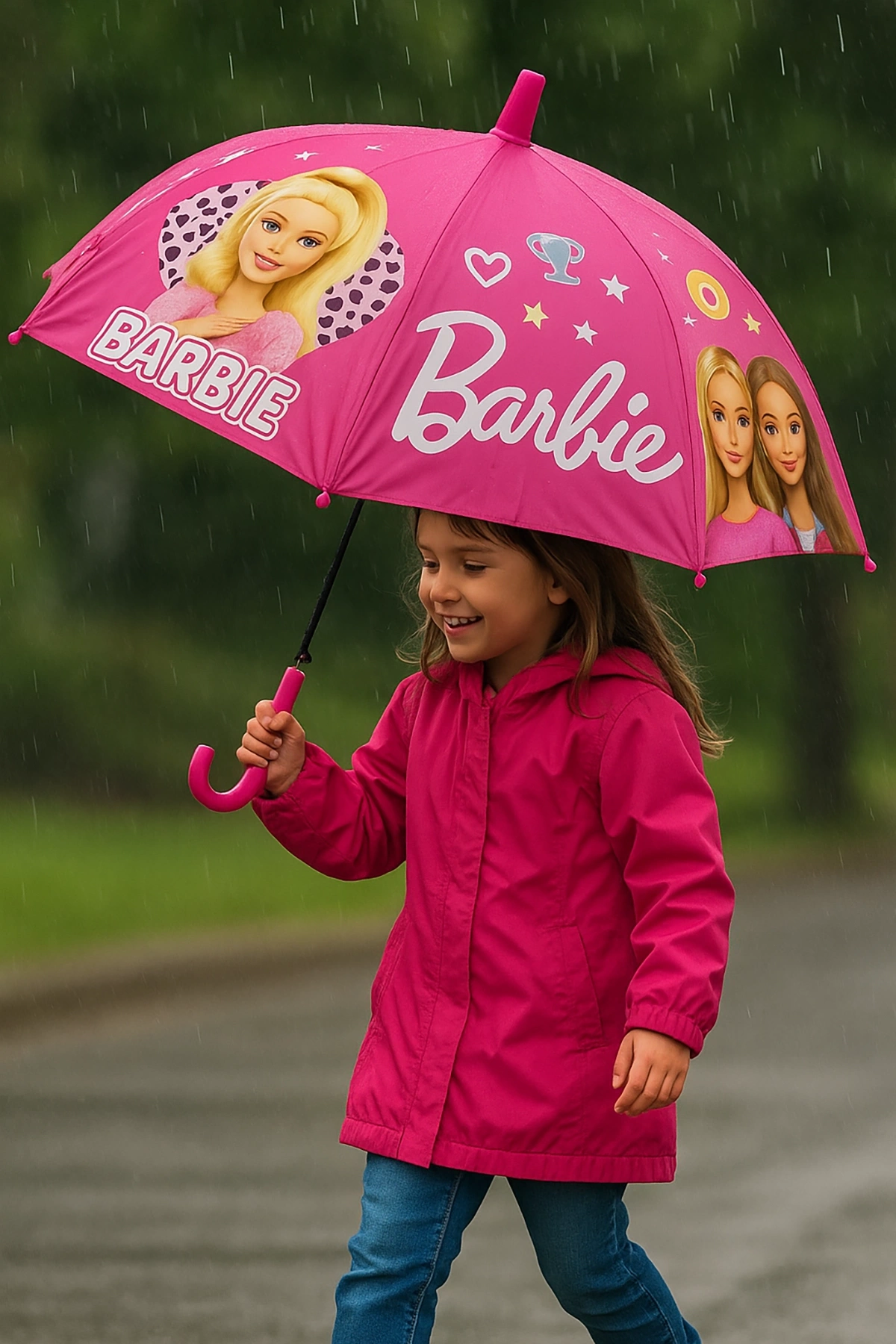 Pembe Renk Karışık Figürlü Kılıflı Çocuk Şemsiye