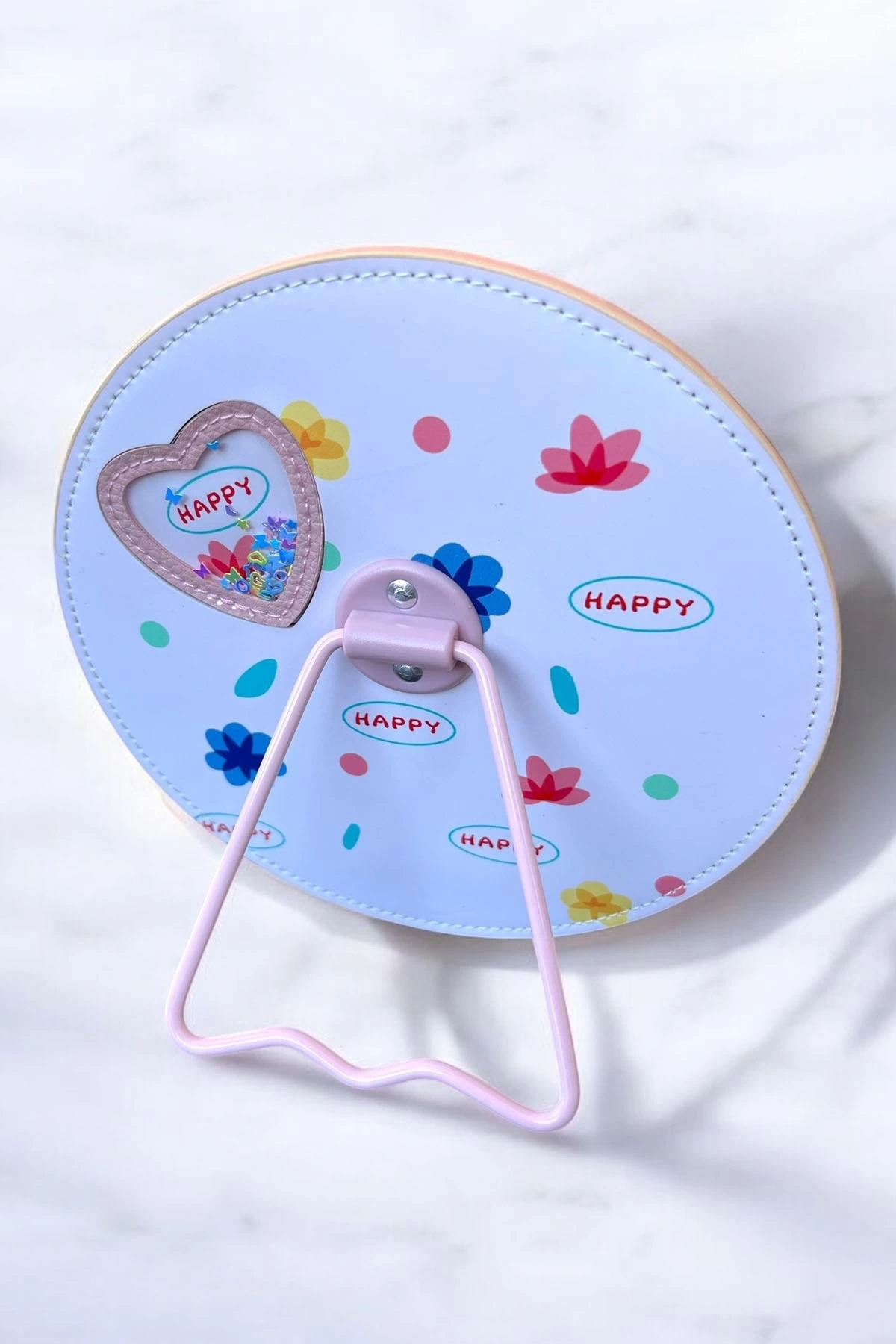 Pembe Renk Karışık Figürlü Yuvarlak Masa Aynası