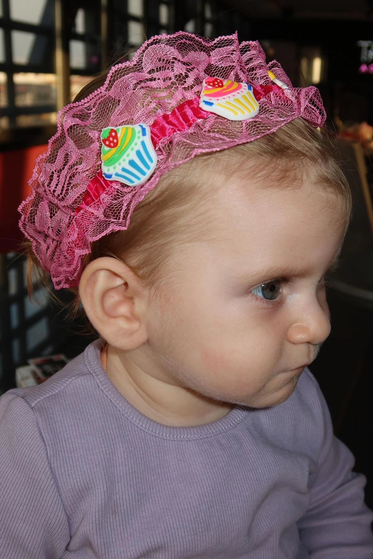 Pembe Renk Kek Figürlü Çocuk Saç Bandı