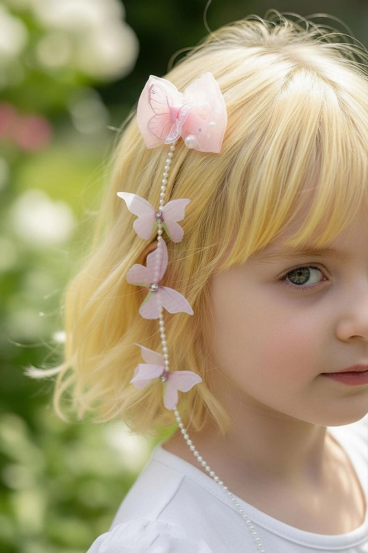 Pembe Renk Kelebek Figürlü İnci Detaylı Çocuk Yan Toka