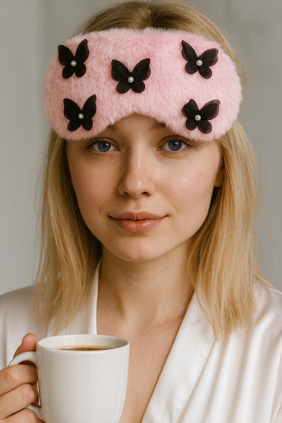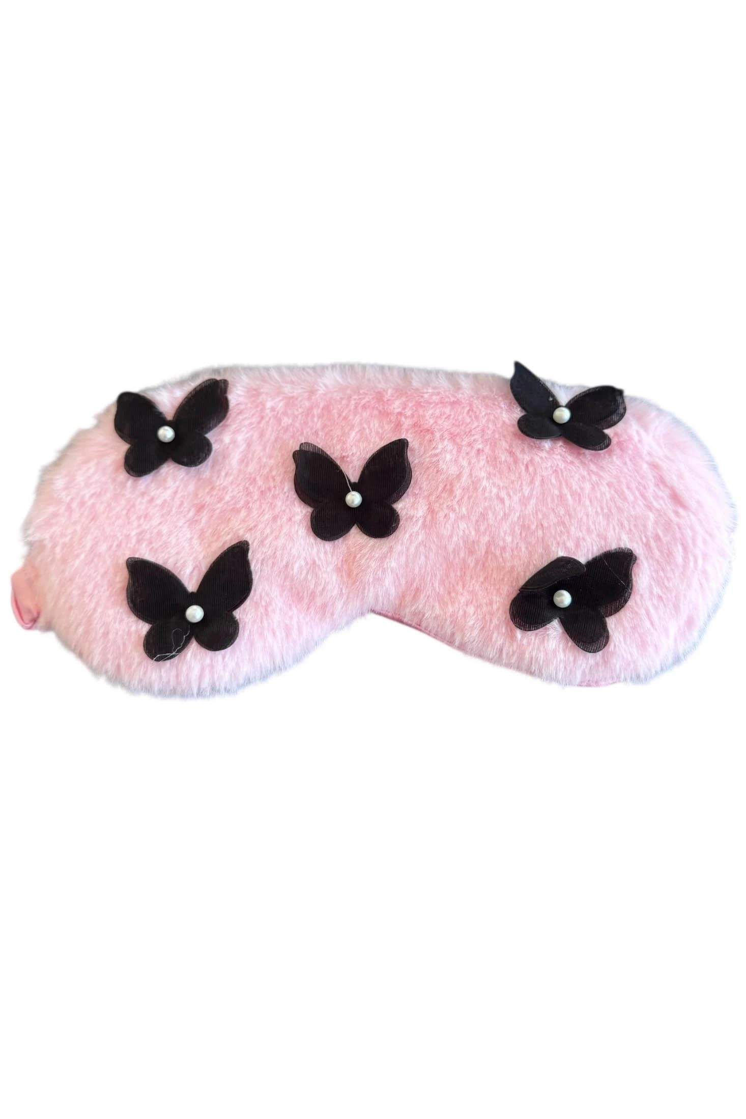 Pembe Renk Kelebek Figürlü İnci Detaylı Peluş Uyku Bandı