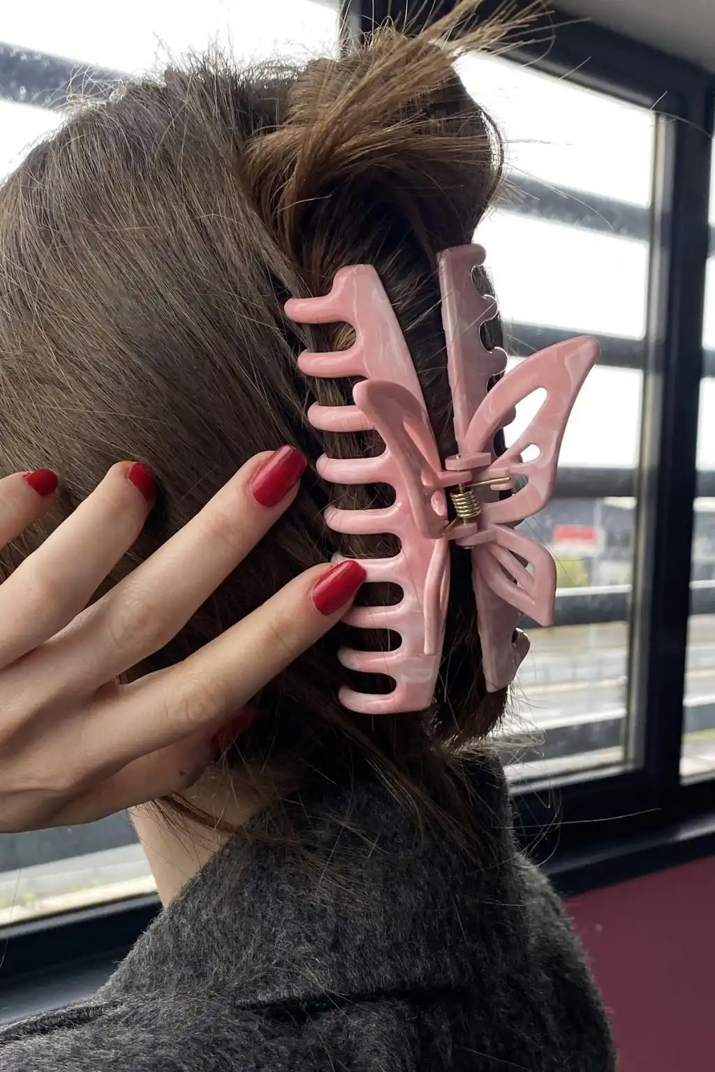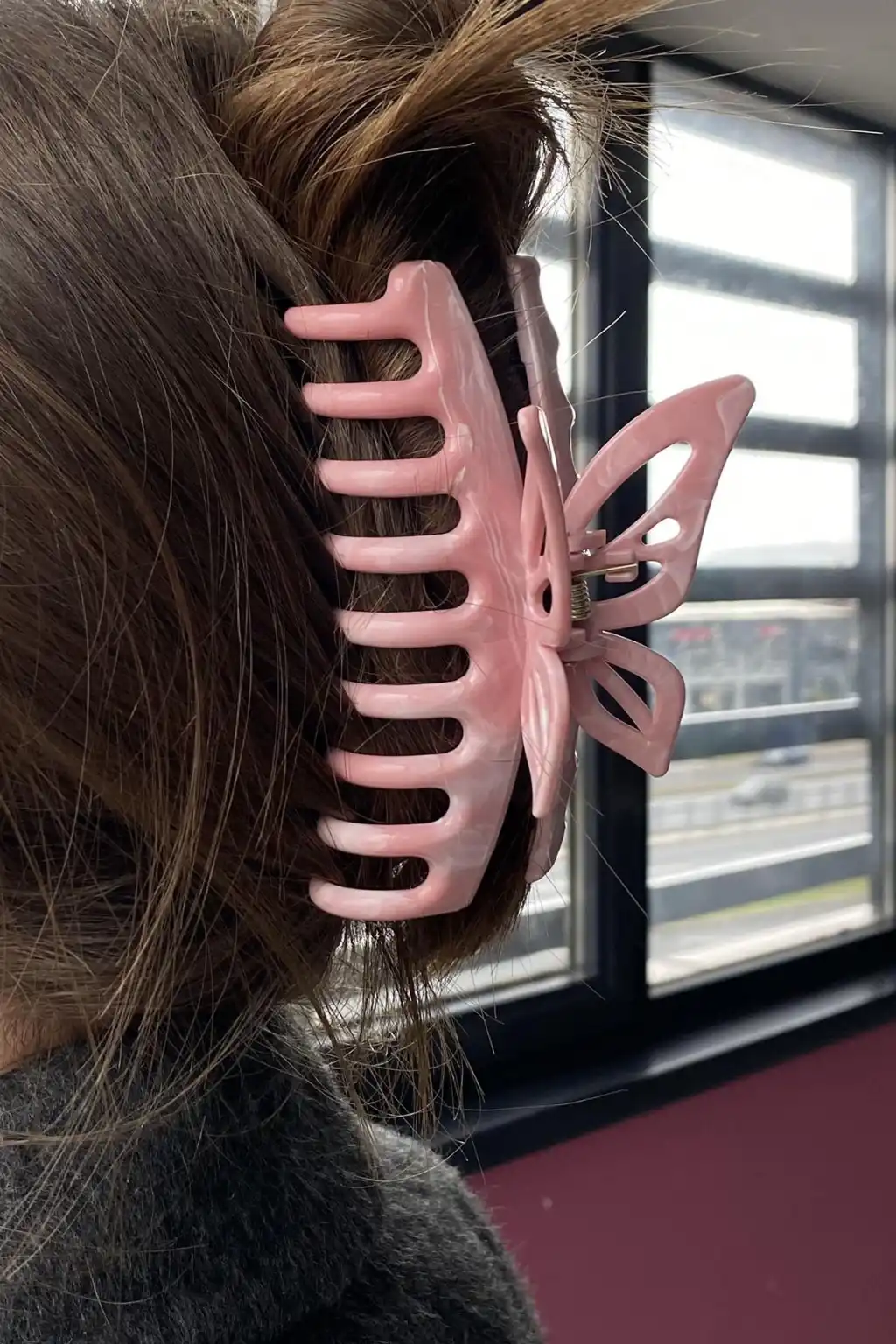 Pembe Renk Kelebek Figürlü Kemik Mandal Toka
