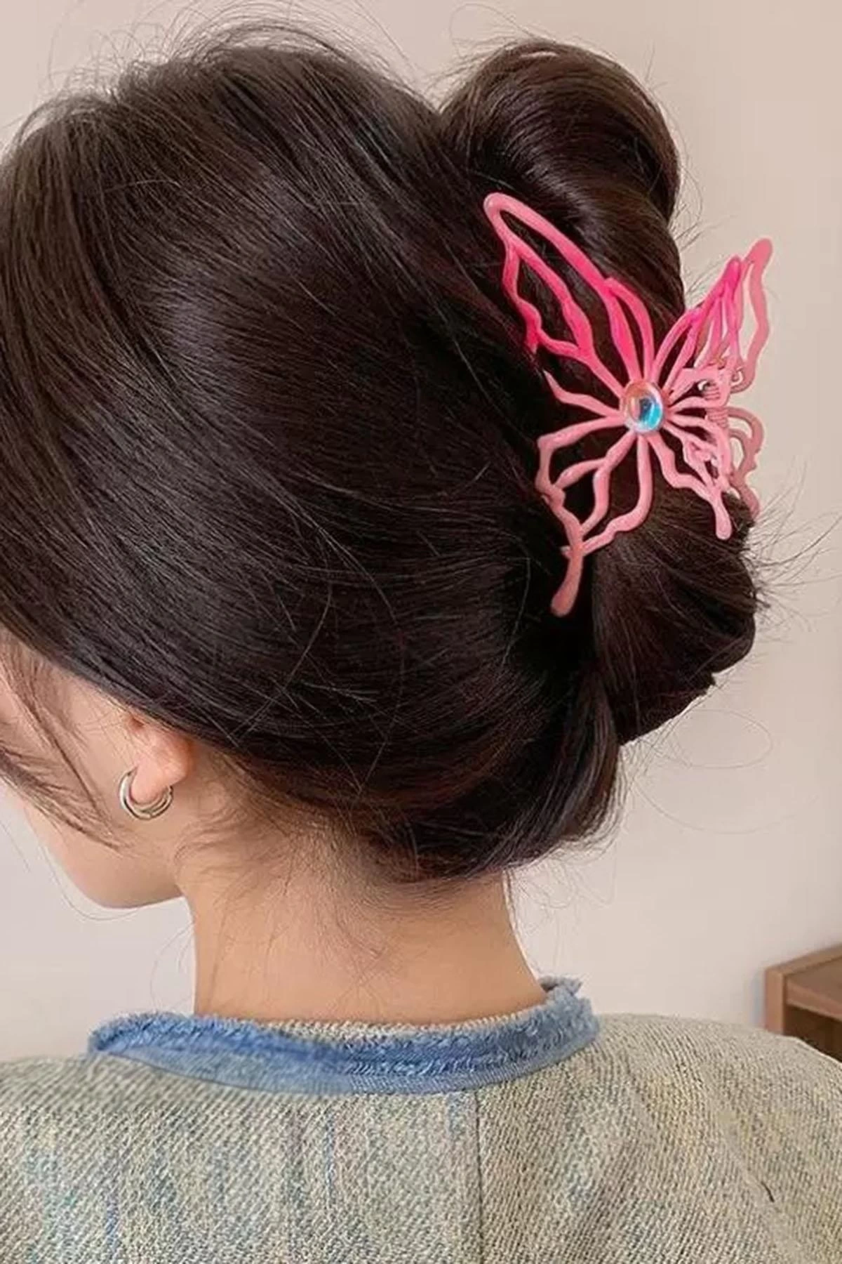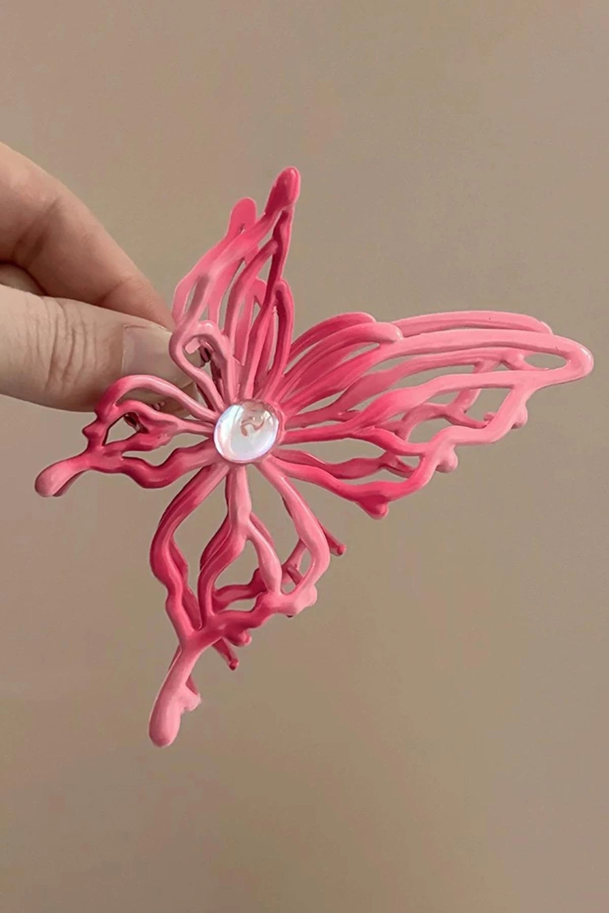 Pembe Renk Kelebek Figürlü Metal Mandal Toka