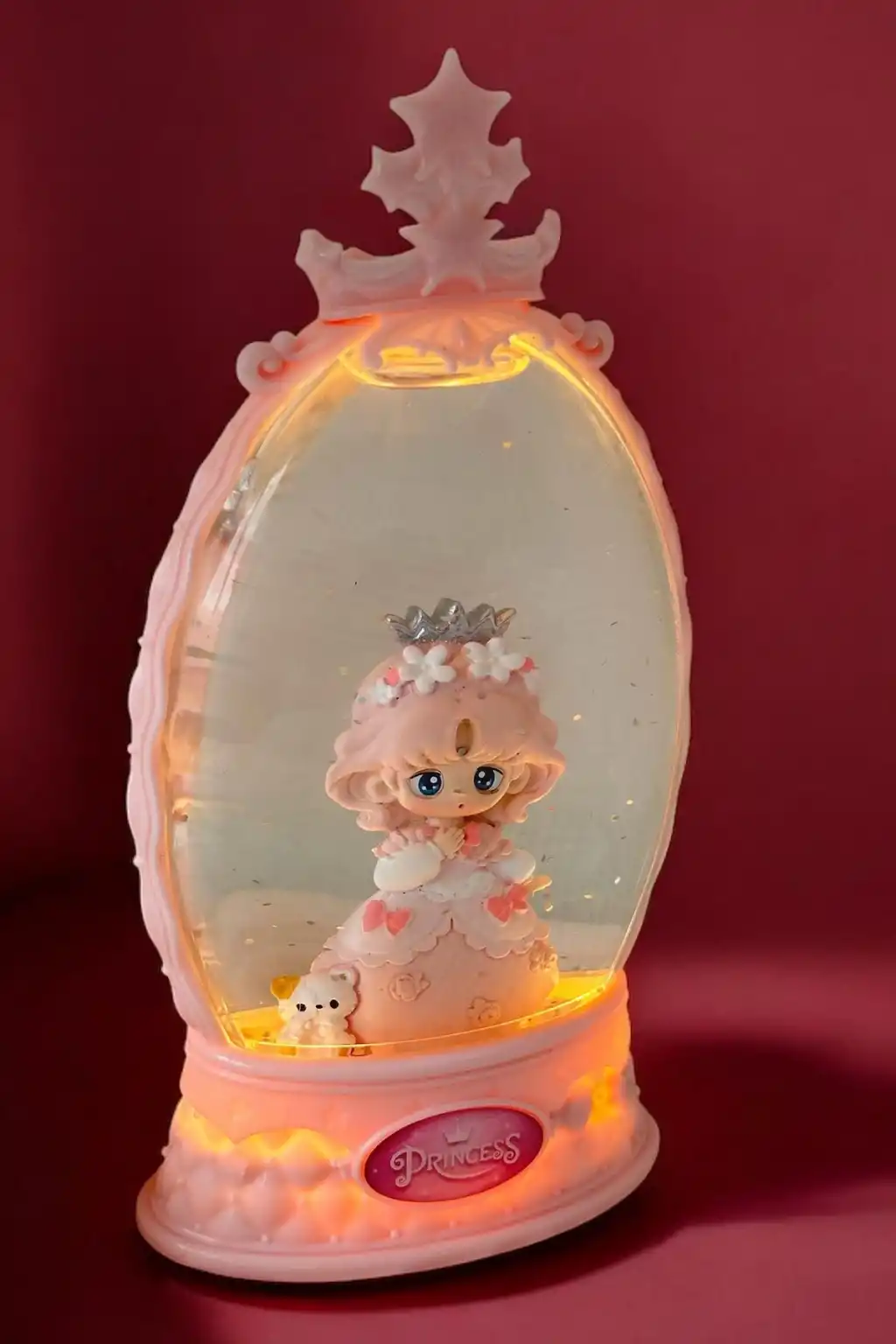 Pembe Renk Kız Figürlü Müzikli Ve Işıklı Kar Küresi