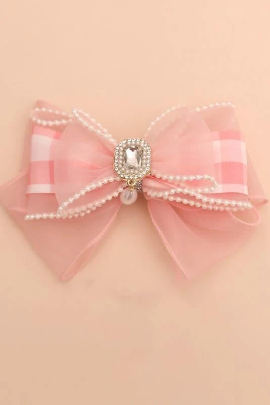 Pembe Renk Kurdele Figürlü İnci Detaylı Otomat Toka