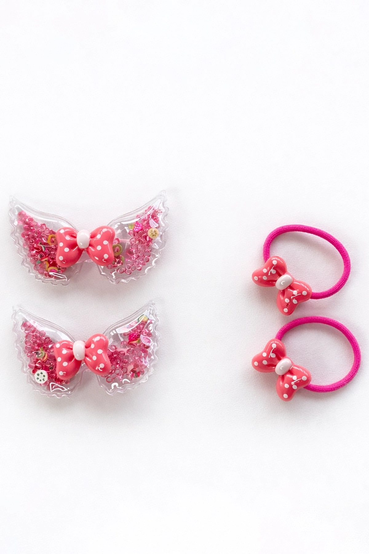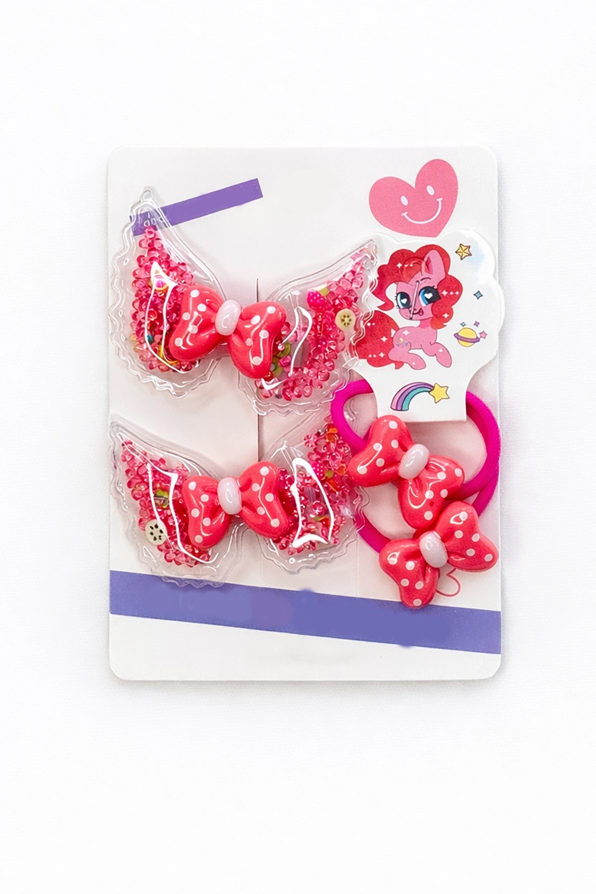Pembe Renk Kurdele Figürlü Lastik Toka Ve Yan Toka Set