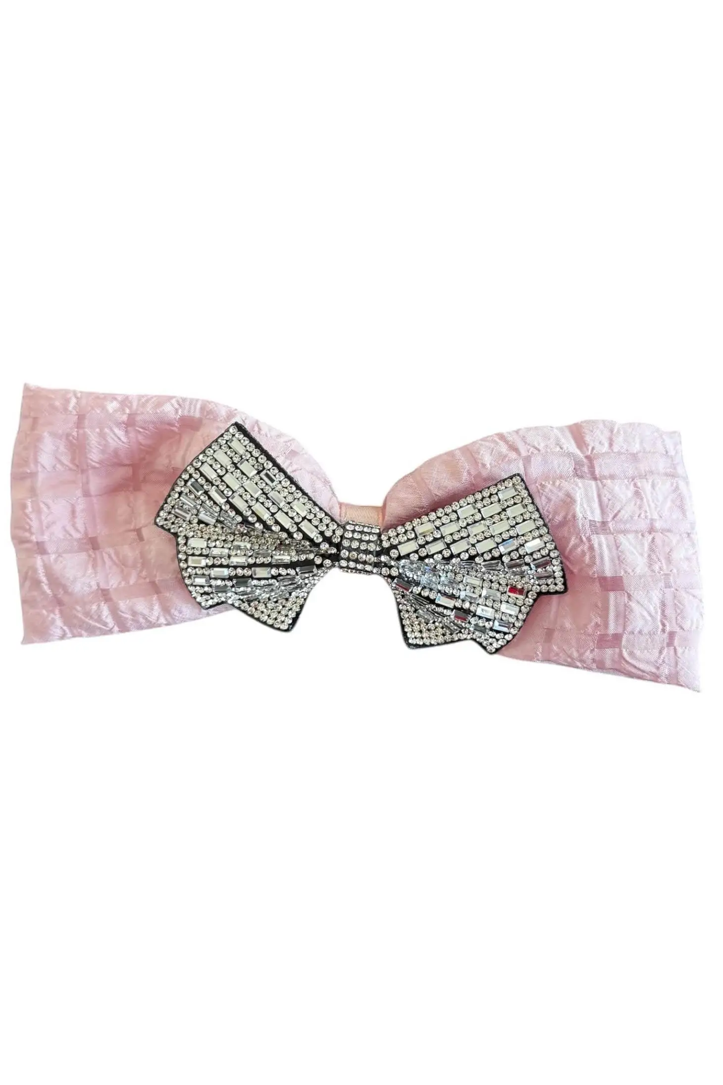 Pembe Renk Kurdele Figürlü İnci Ve Taş Detaylı Otomat Toka