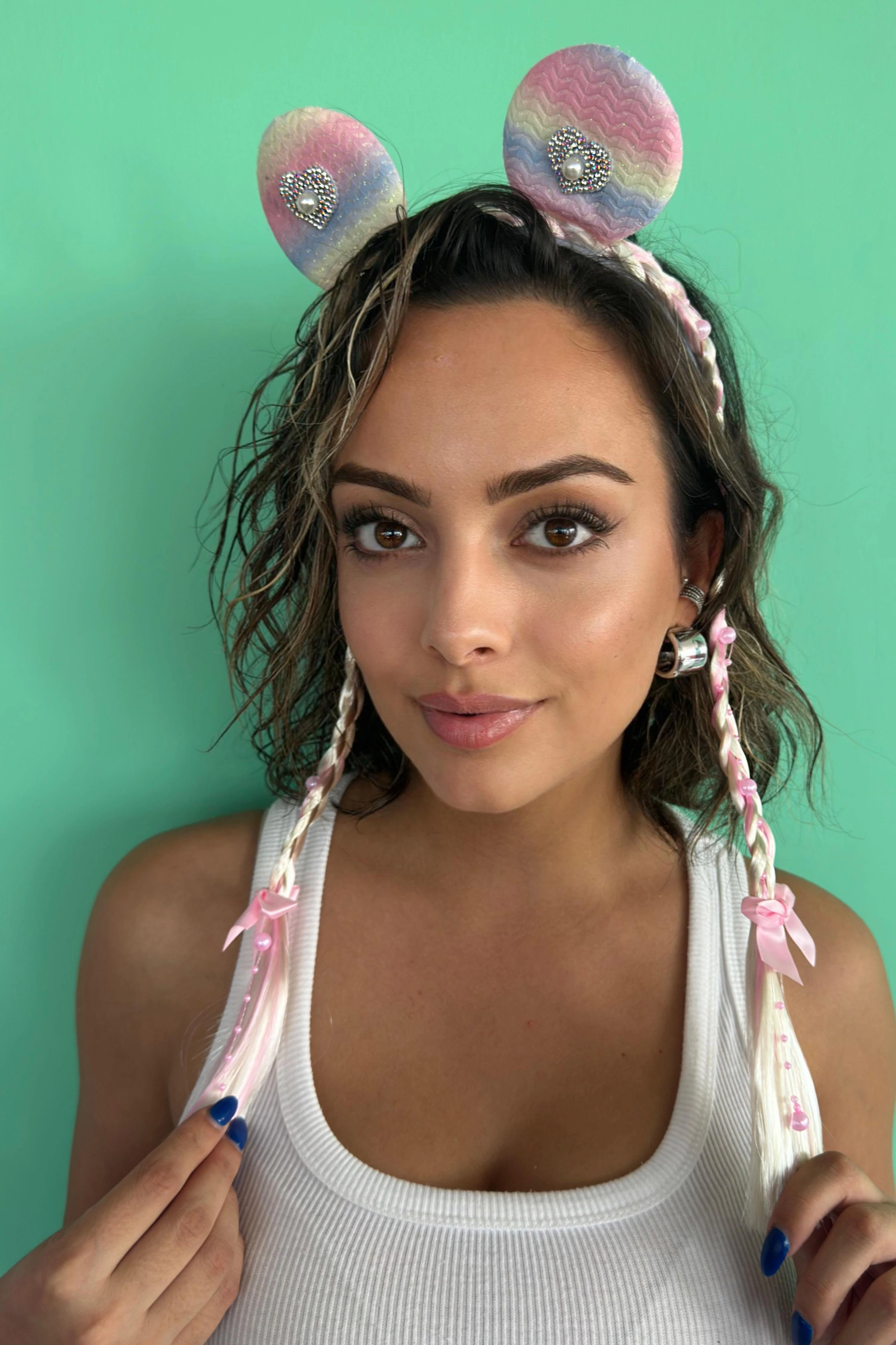 Pembe Renk Örgü Detaylı Kulaklı Çocuk Taç
