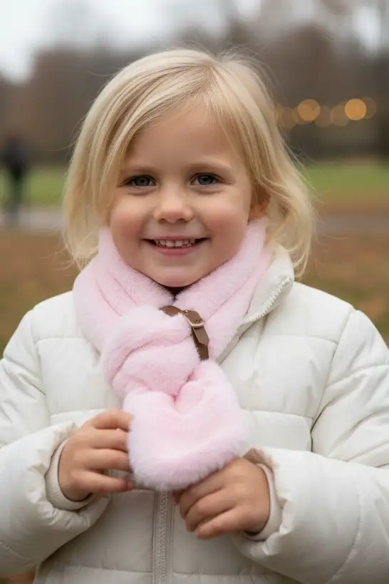 Krem Ve Gri Renk Çocuk Peluş Atkı