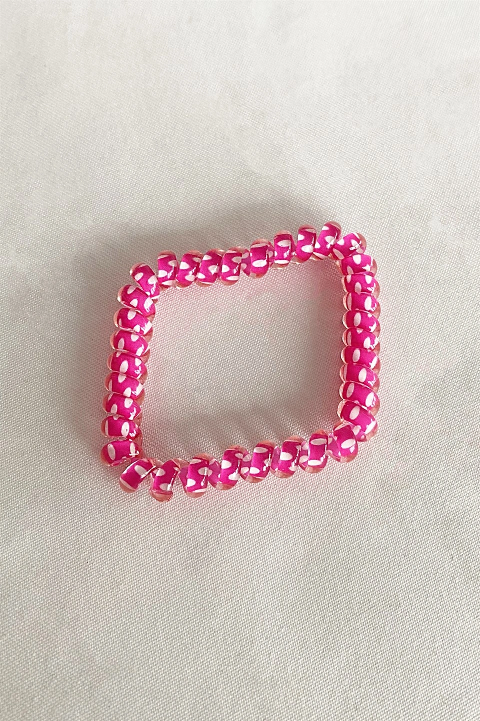 Pembe Renk Puantiyeli Helezon Lastik Toka