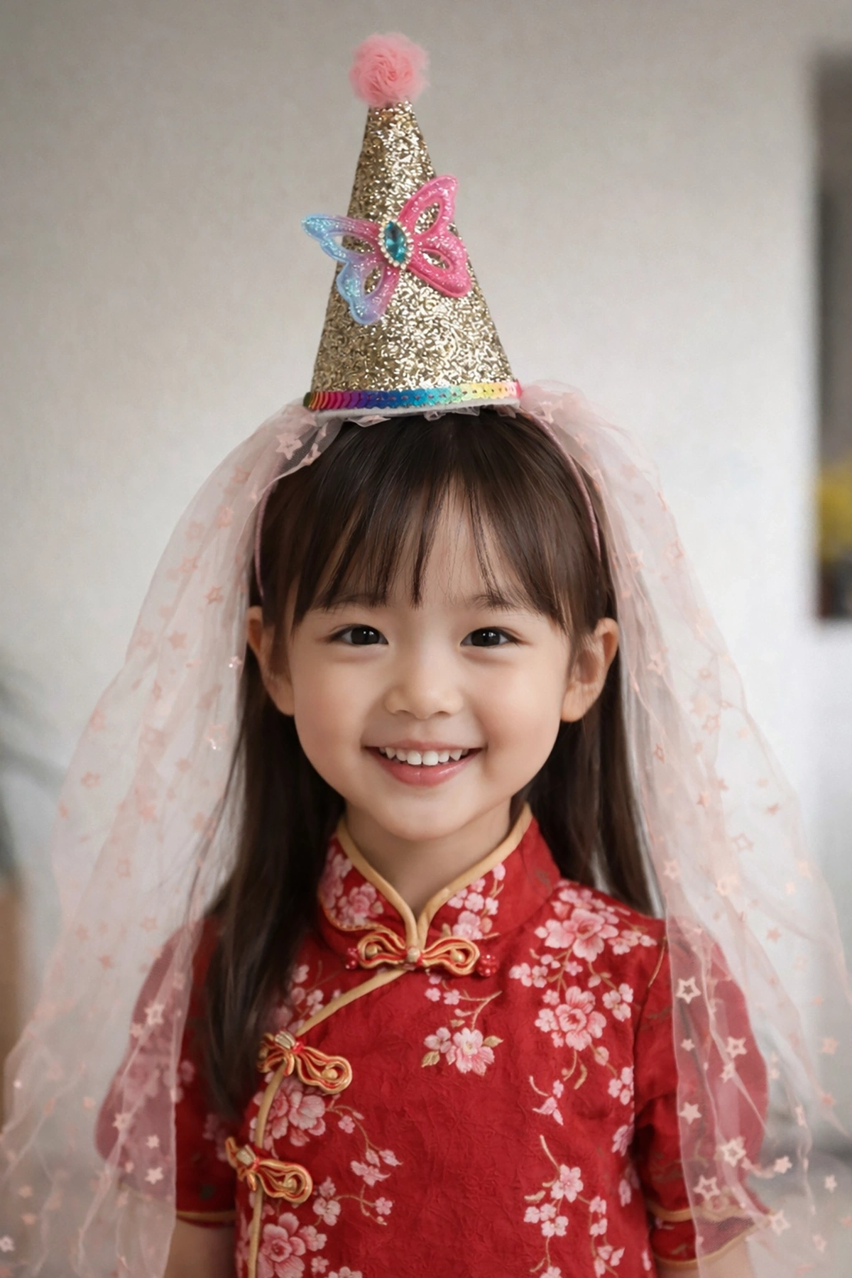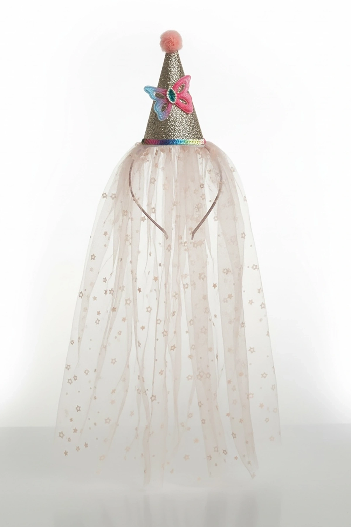 Pembe Renk Şapka Figürlü Tül Detaylı Çocuk Taç