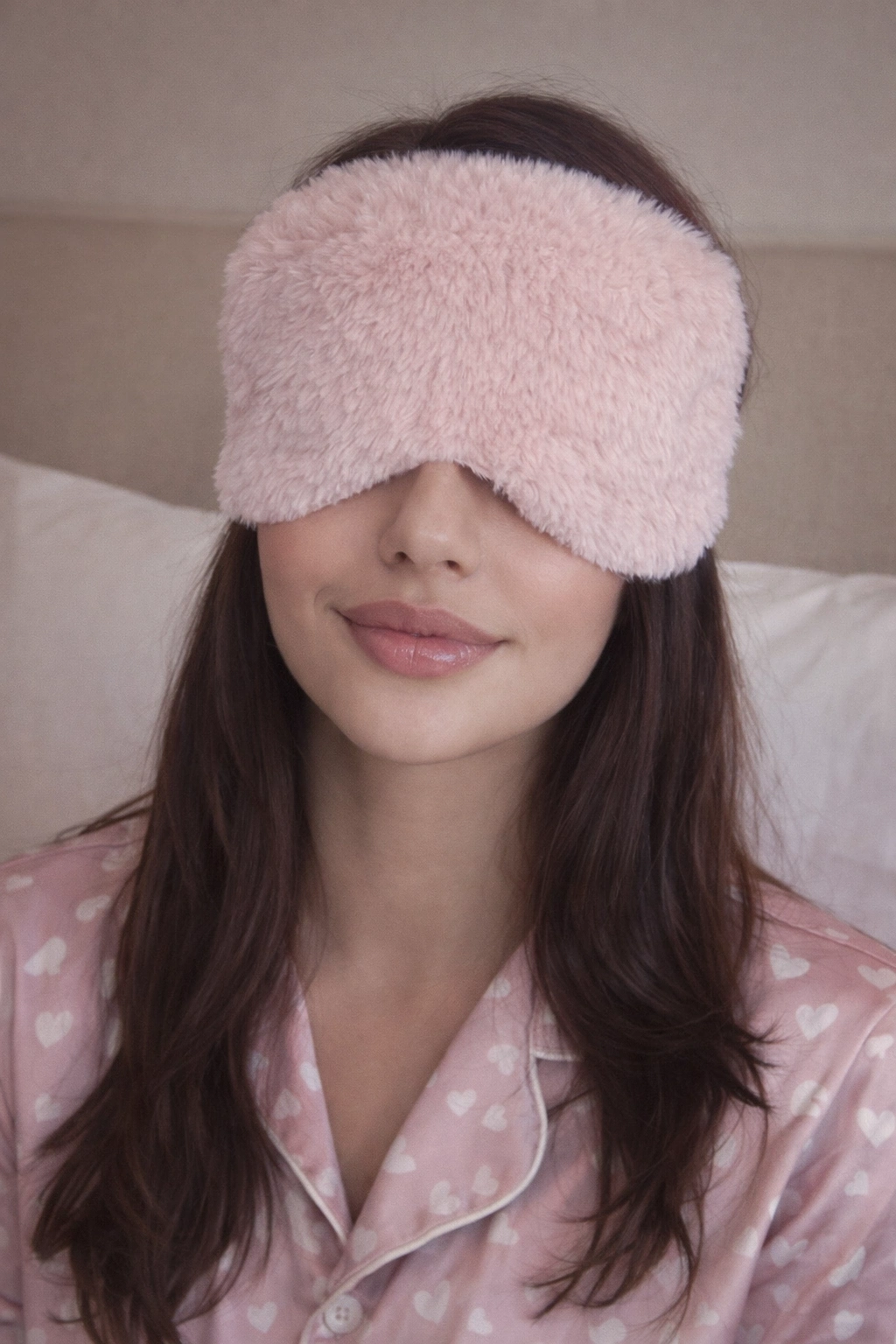 Pembe Renk Sim Detaylı Peluş Uyku Bandı