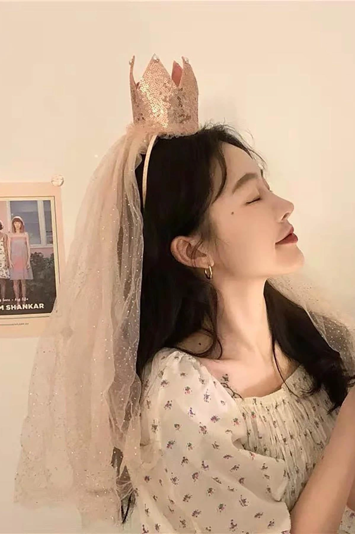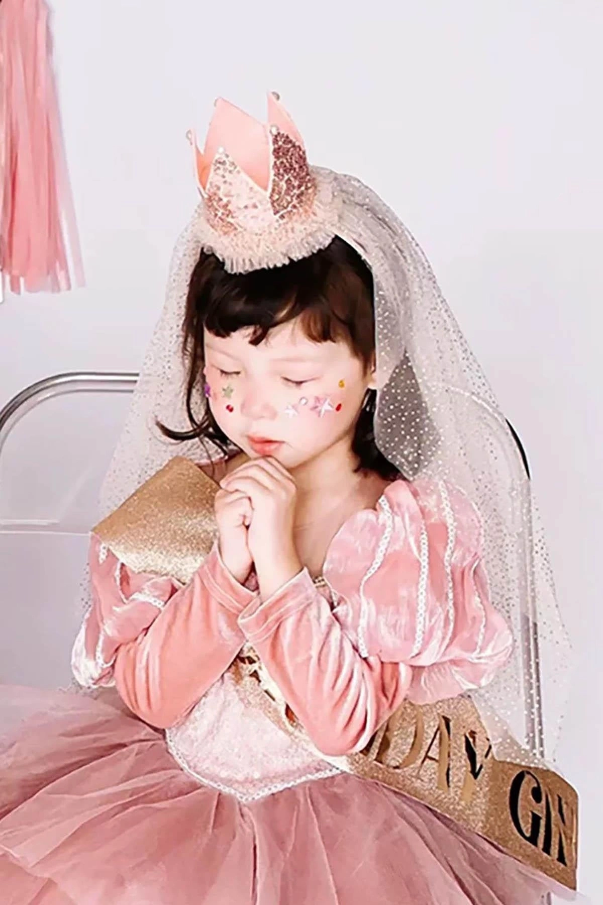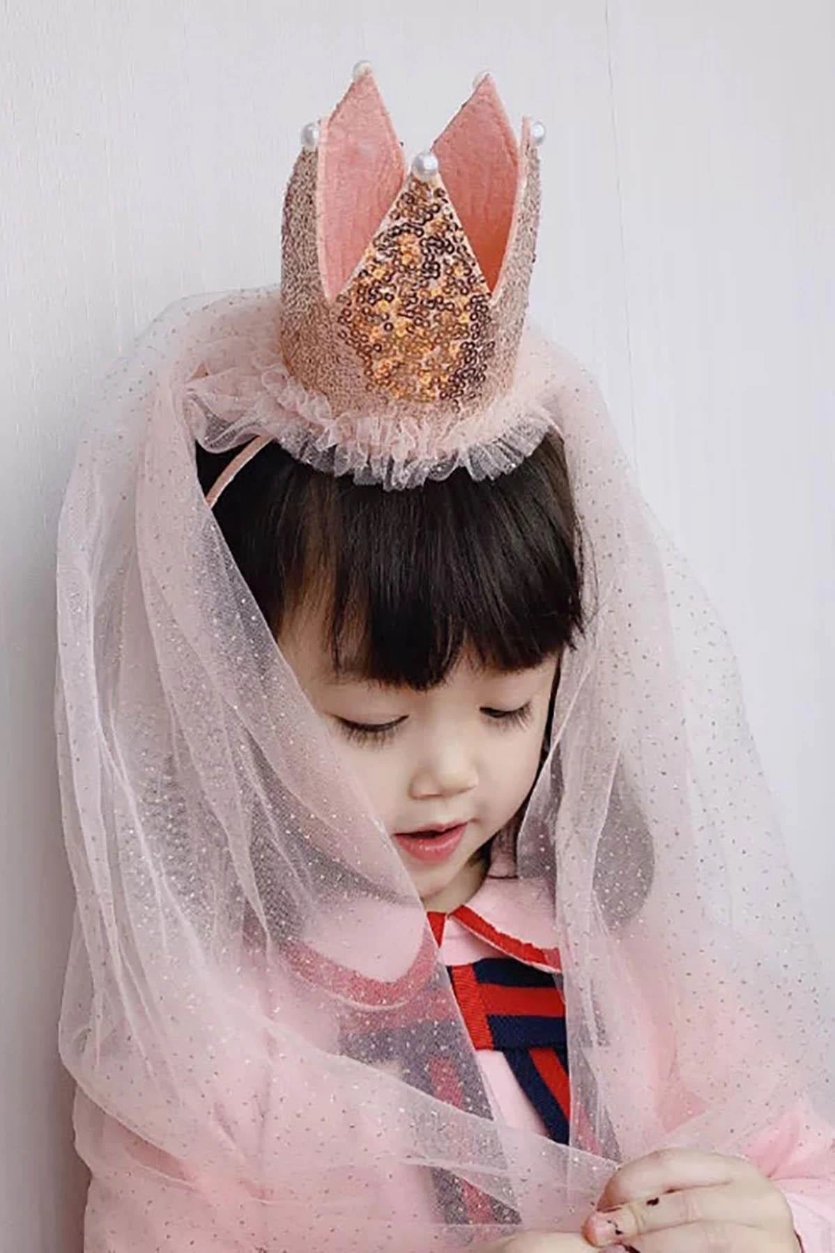 Pembe Renk Taç Detaylı Tüllü Taç