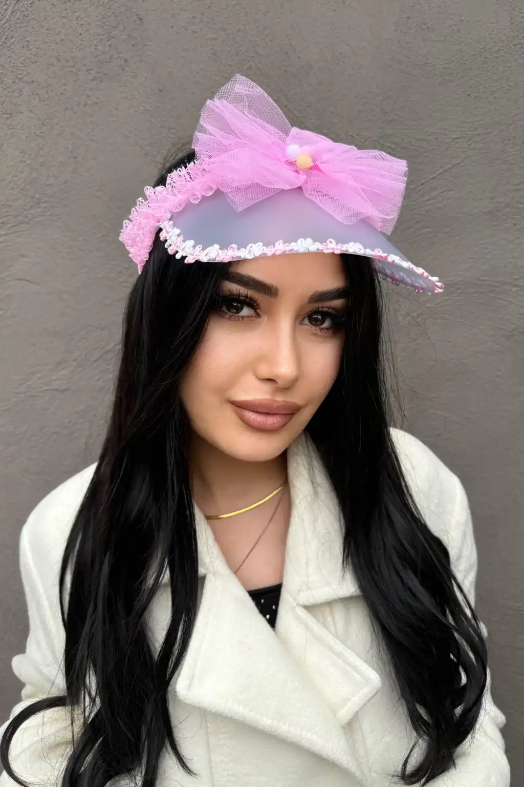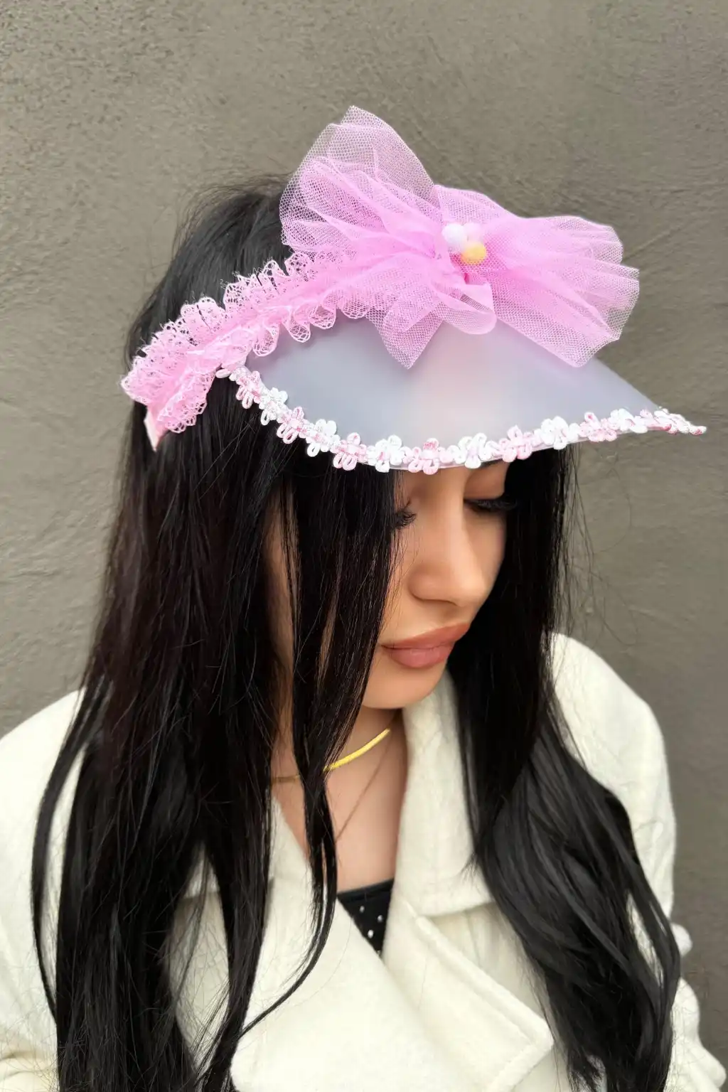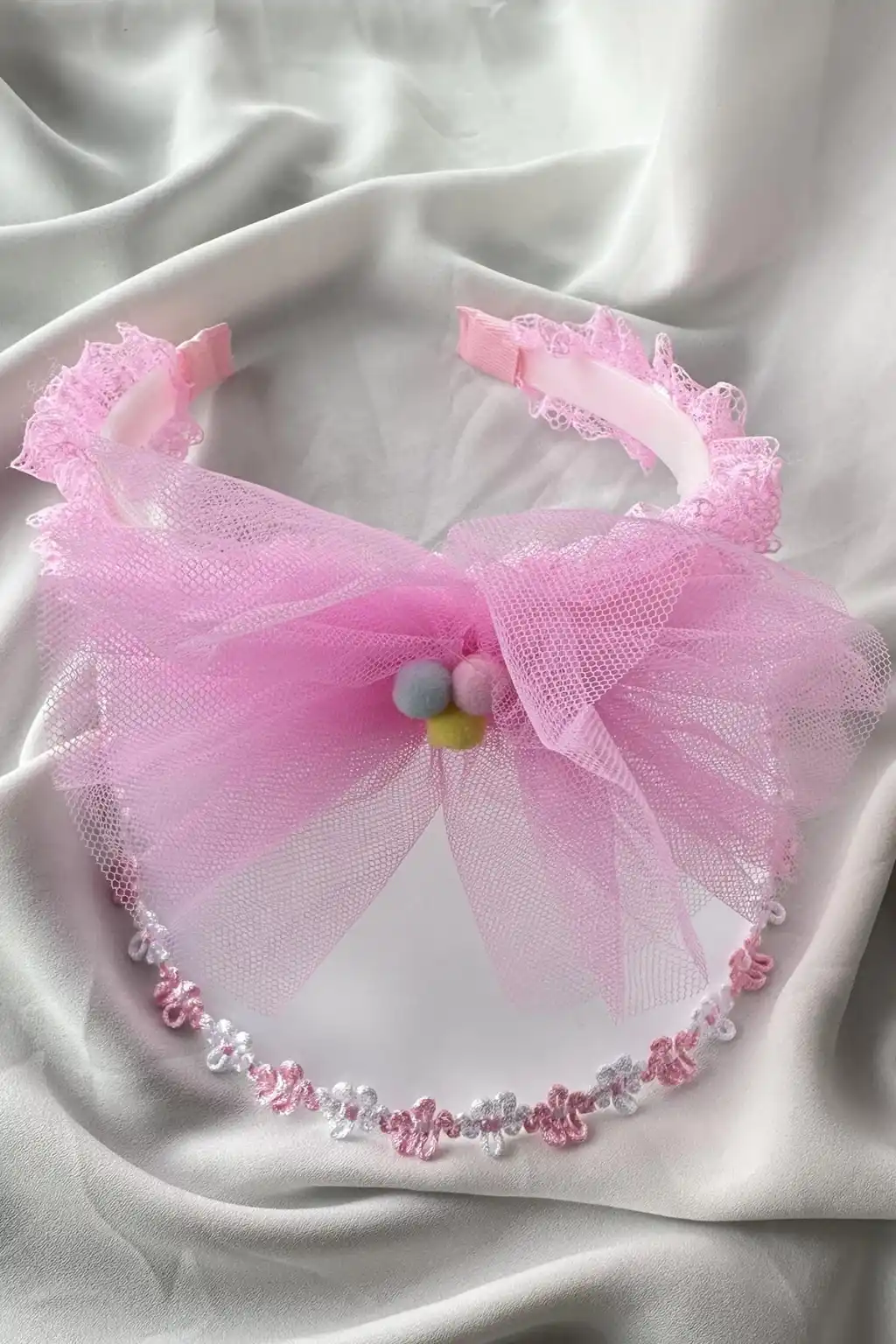 Pembe Renk Kurdele Figürlü Örgü Detaylı Çocuk Taç