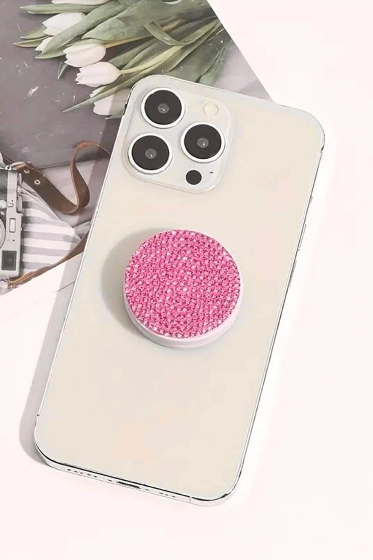 Pembe Renk Taş Detaylı 3D Telefon Tutacağı