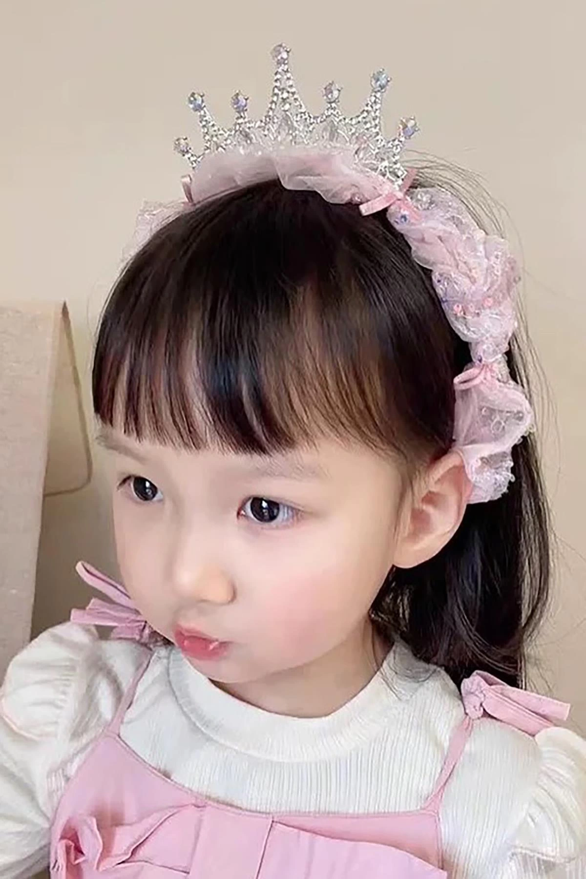Pembe Renk Taş Detaylı Tüllü Çocuk Taç