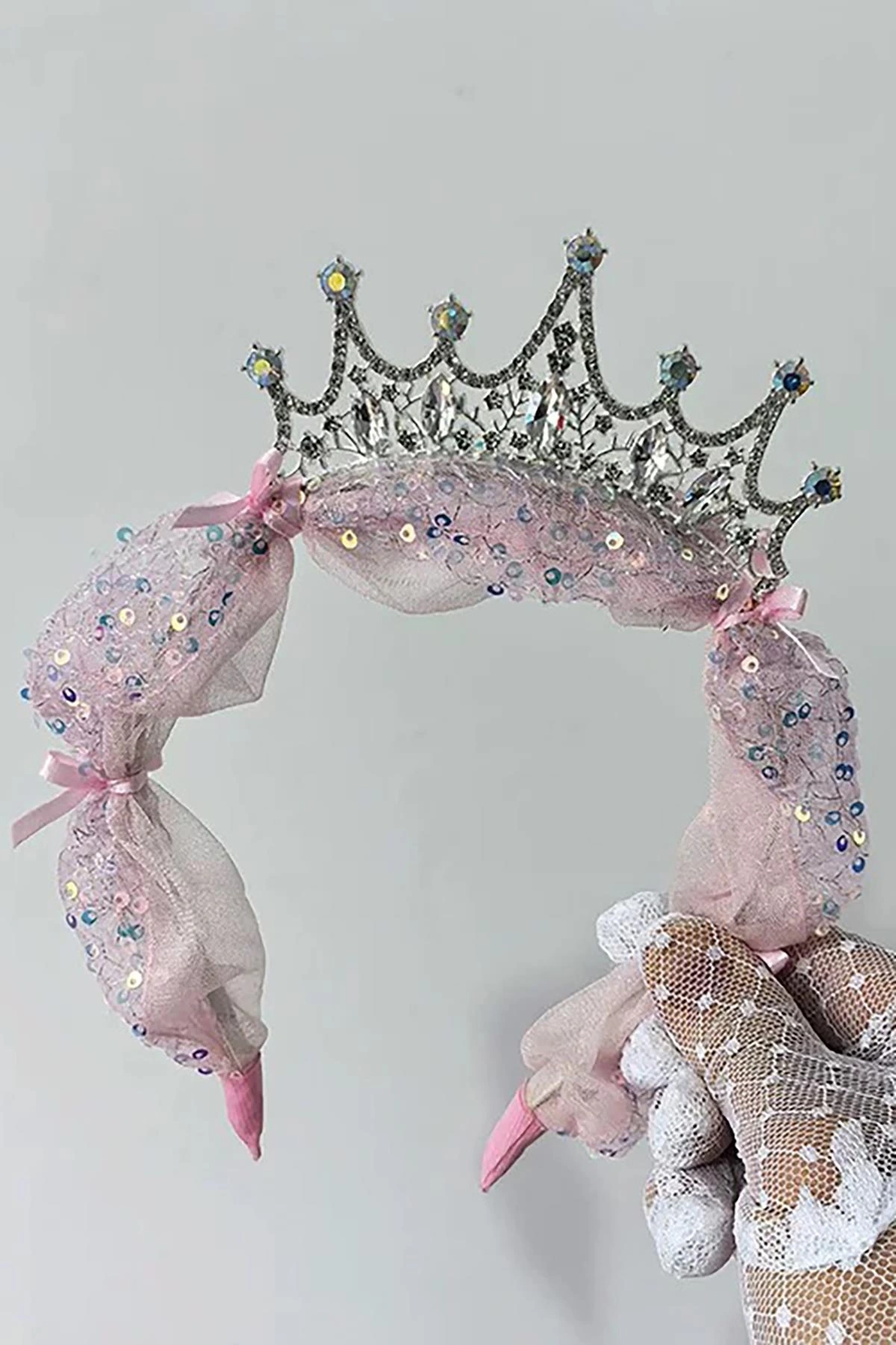 Pembe Renk Pullu Kurdele Figürlü Işıklı Taç