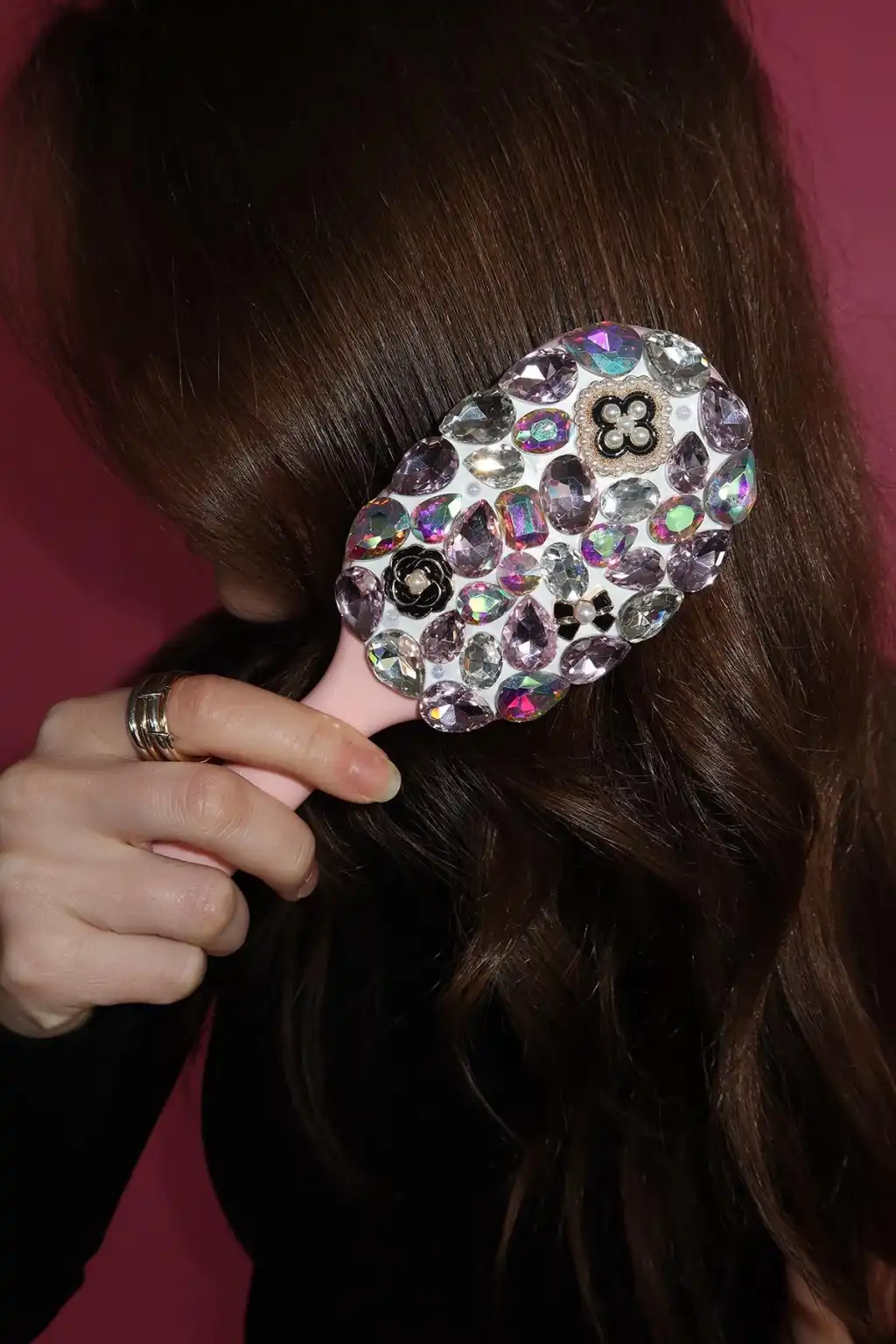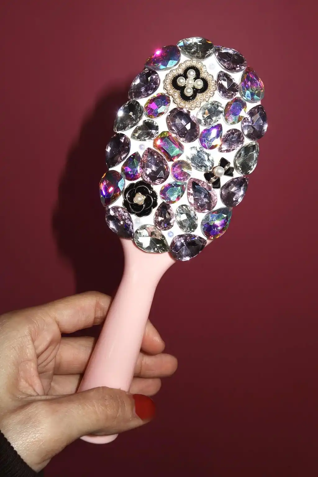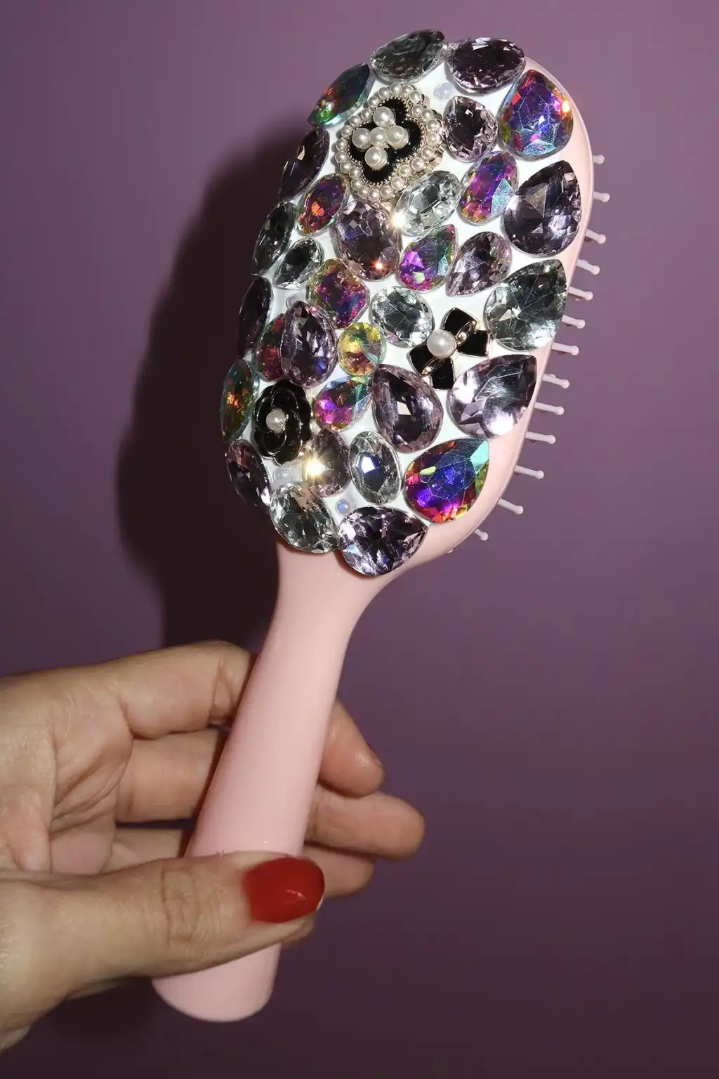 Pembe Renk Taş Ve İnci Detaylı Saç Tarama Fırçası/ Tarak