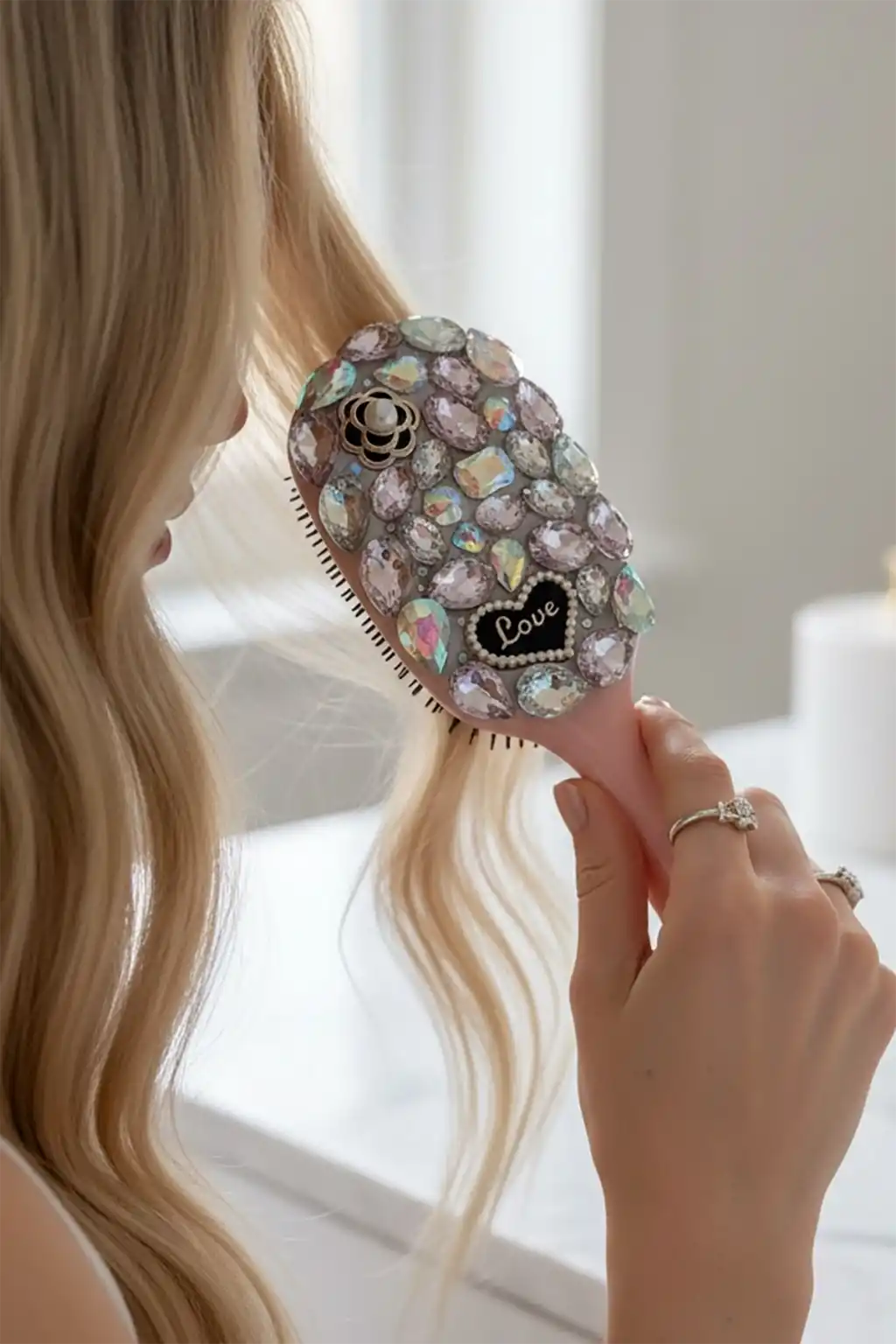 Pembe Renk Taş Ve Love Yazılı Saç Tarama Fırçası/ Tarak