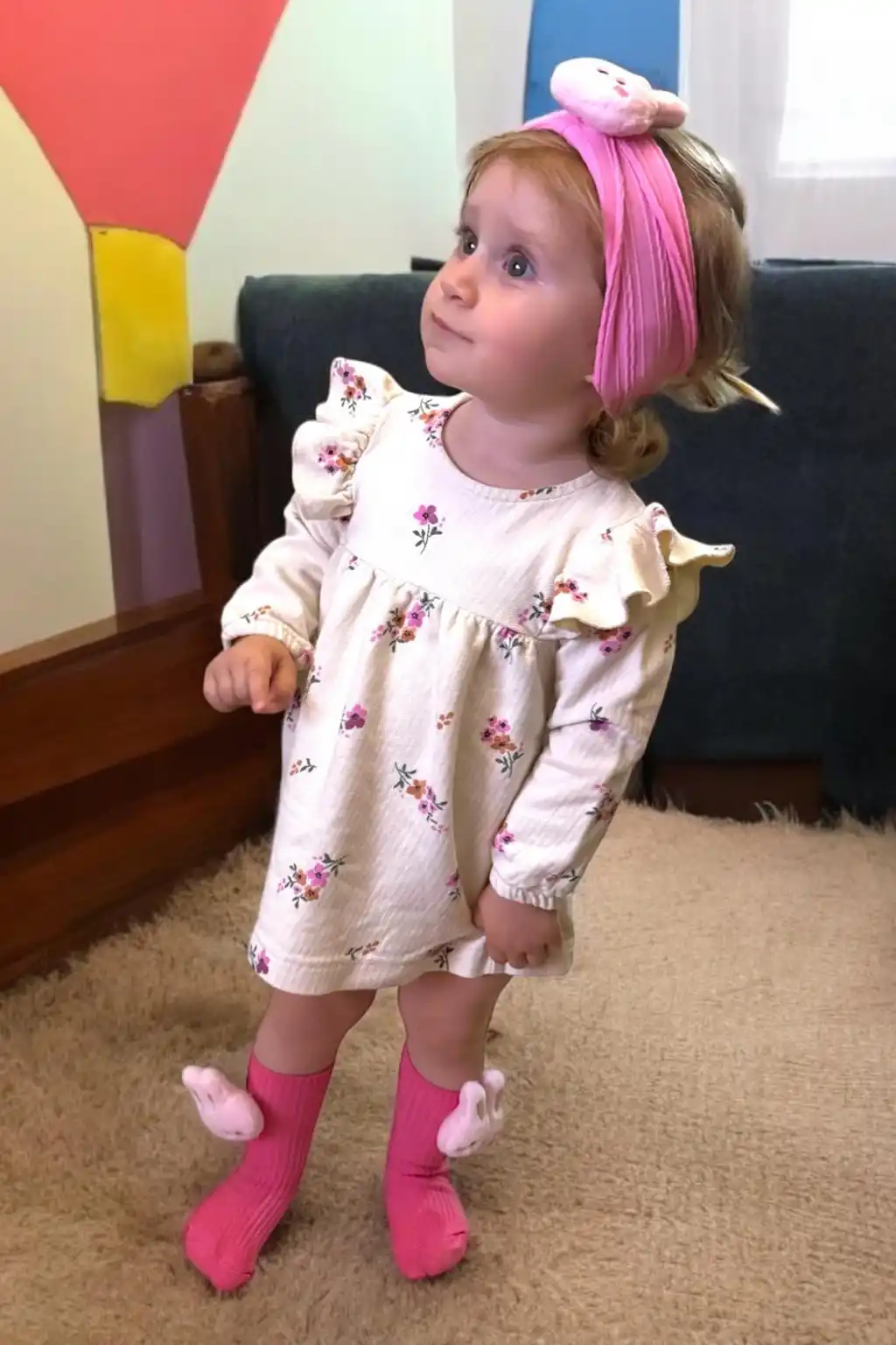 Pembe Renk Tavşan Figürlü Çocuk Saç Bandı Ve Çorap Set