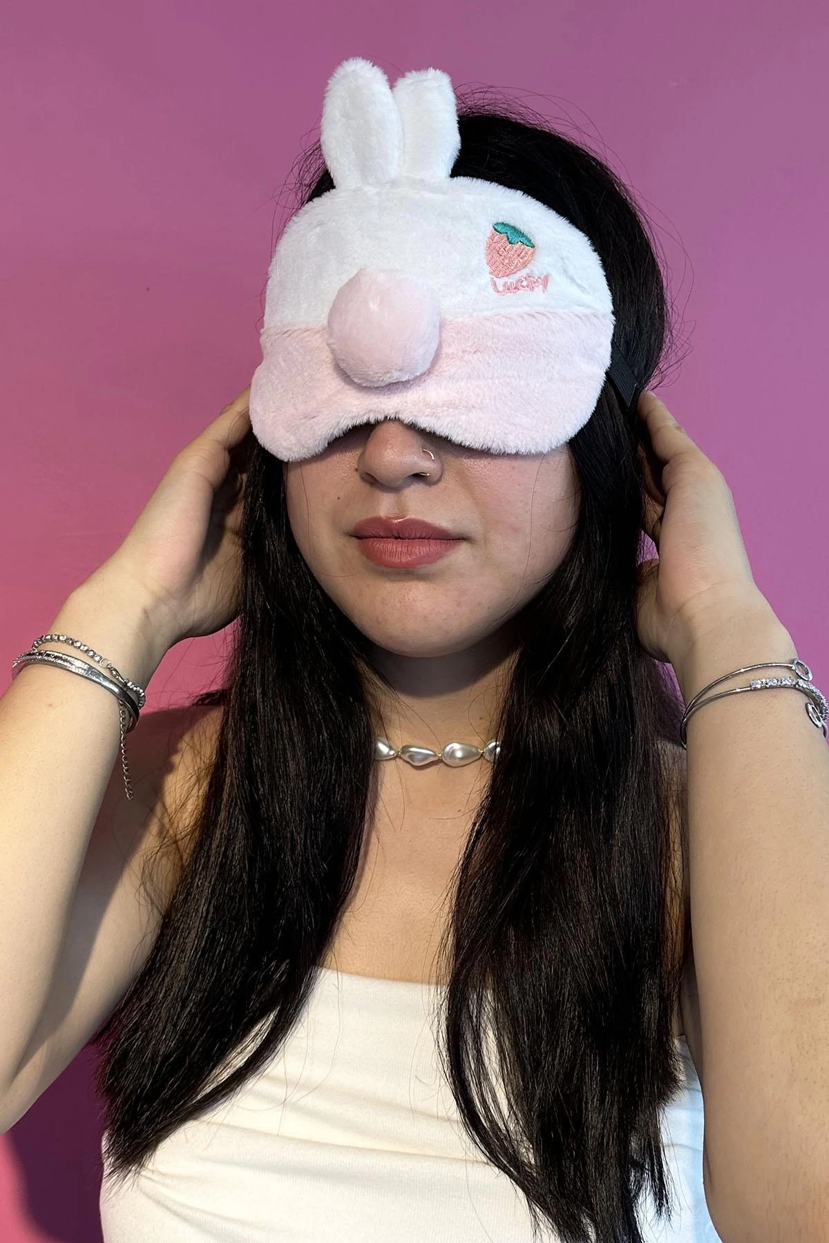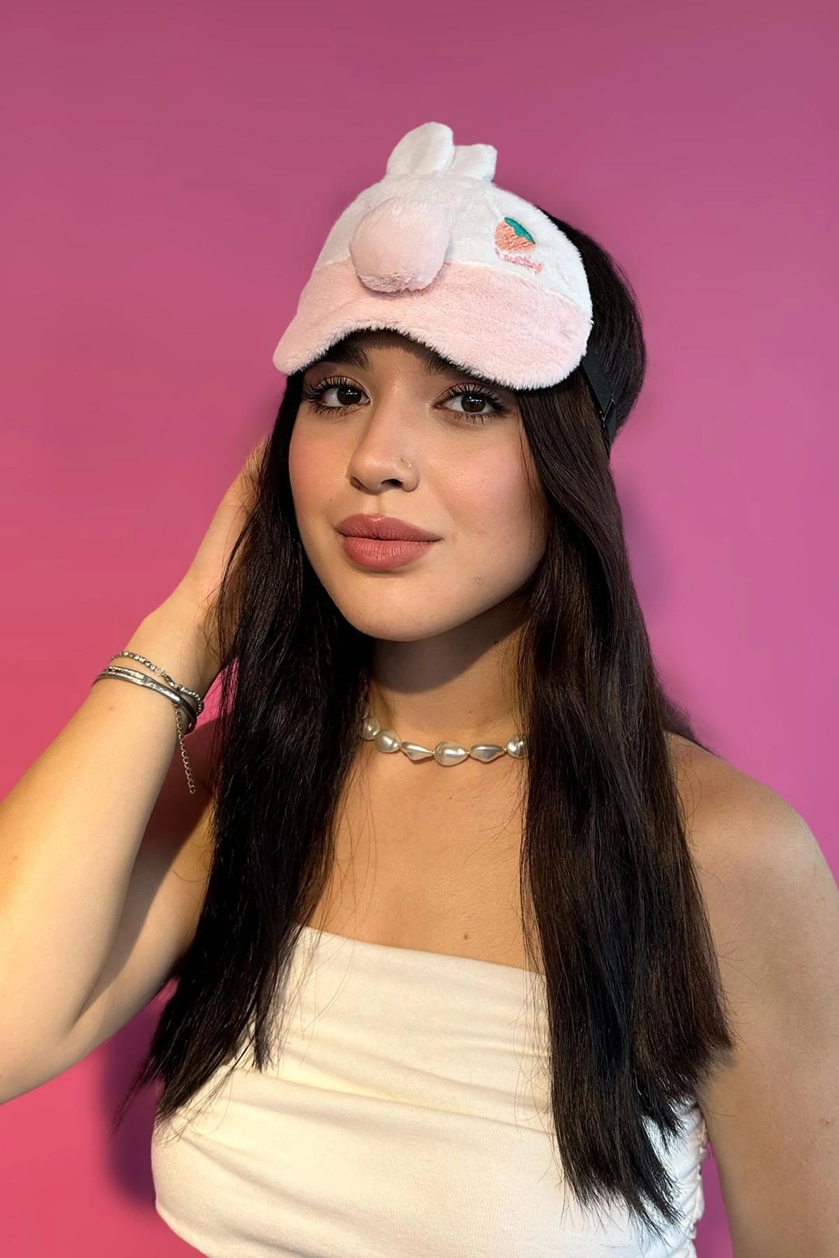 Pembe Renk Tavşan Figürlü Peluş Uyku Bandı