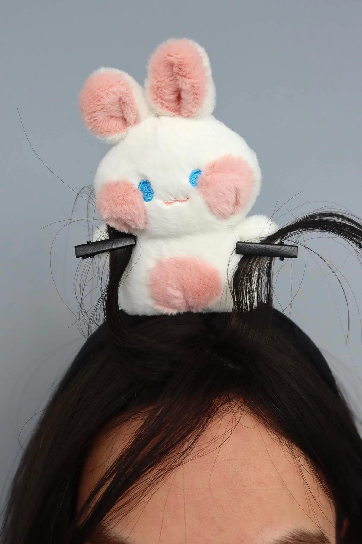 Pembe Renk Tavşan Figürlü Perçem Tokası Detaylı Taç